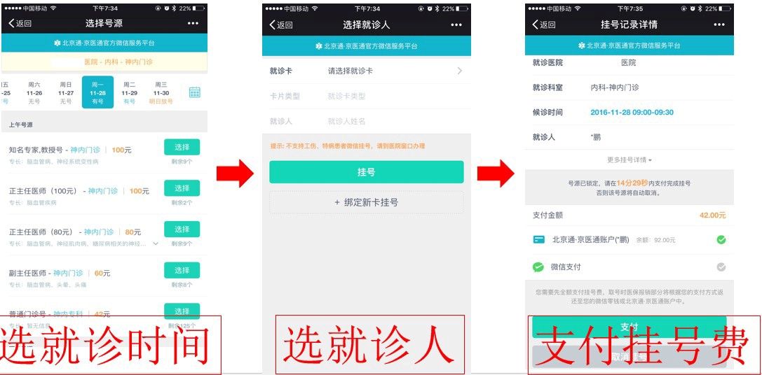 通过上述的解释,大家对京医通服务流程大概了解了,有几点需要和患者分享的,请牢记以下几点: