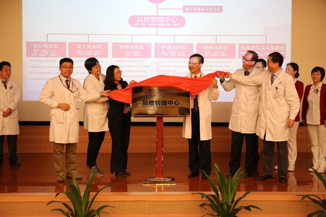 揭牌仪式由党委副书记陈旭岩主持。党委书记周月红、执行院长董家鸿、党委副书记陈旭岩、院长助理武剑、血管外科主任吴巍巍、普外科副主任罗斌等共同为品管中心揭牌。董家鸿在讲话中指出,开业2年来我院在医、教、研方面取得了快速发展与长足进步,为使医院实现持续、健康、快速和跨越式发展,医疗质量管理这一医院管理的永恒主题被提到了新的高度。为利更加系统化、精细化的进行质量管理工作,并且使广大医师团队积极参与到医疗质量的管理中,在充分借鉴台湾林口长庚医院品管中心模式基础上,院务会决定成立我院品质管理中心,具体落实医院质量管理各项作业,并任命武剑院长助理为中心主任,同时任命吴巍巍为品管中心副主任,医政组何纪毅组长为品管中心高专。