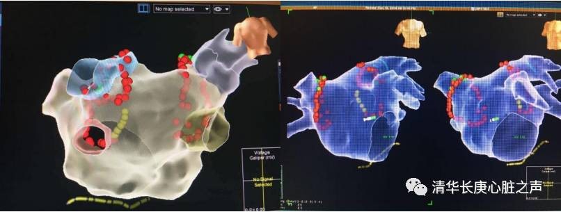 图2 采用国际最新的三维导航系统,通过光感压力导管对左心房和肺静脉进行三维建模