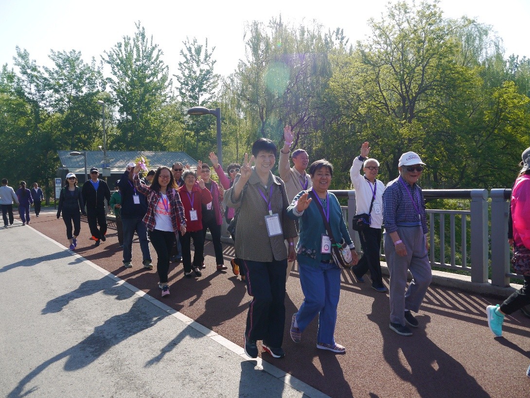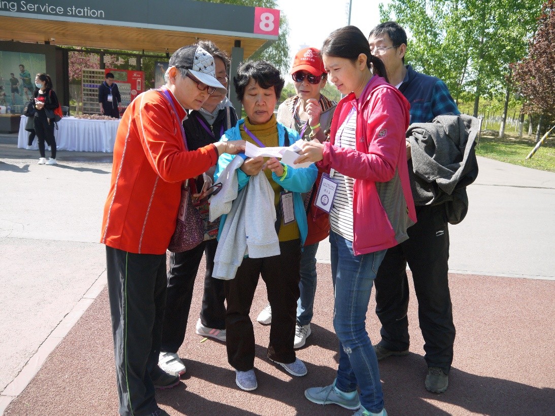 早上08:00,糖友们准时到达奥林匹克森林公园北园东门集合,清华长庚医护人员为糖友们监测运动前血糖,8:20糖尿病个案管理师李彩宏带领糖友们做十分钟热身操,该热身操是专为糖尿病患者设计,活动全身关节,强度适中。8:30根据大家的身体素质分为快、中、慢三个分队,在领队的带领下,兵分三队开始5公里健步走。为了增加运动的趣味性,同时让糖友们在游戏中加深对糖尿病的认识,设置了三个关卡。