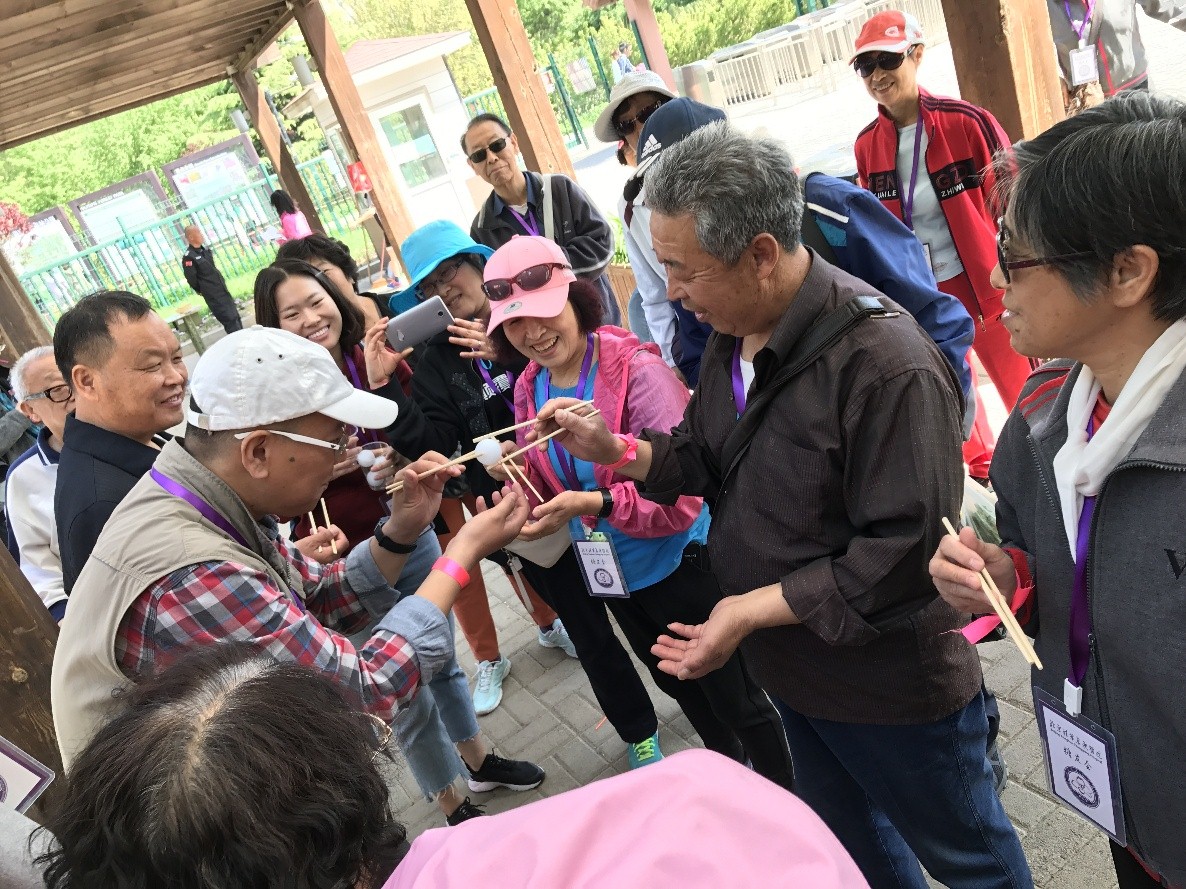 第3关“趣味接力”,筷子夹乒乓球接力,每队派出10人参加,完成5次接力计时最快完成的队计1分。糖友是一个病友团体,大家彼此互动,在互动中交流,在交流中,更加注意自己的疾病管理。