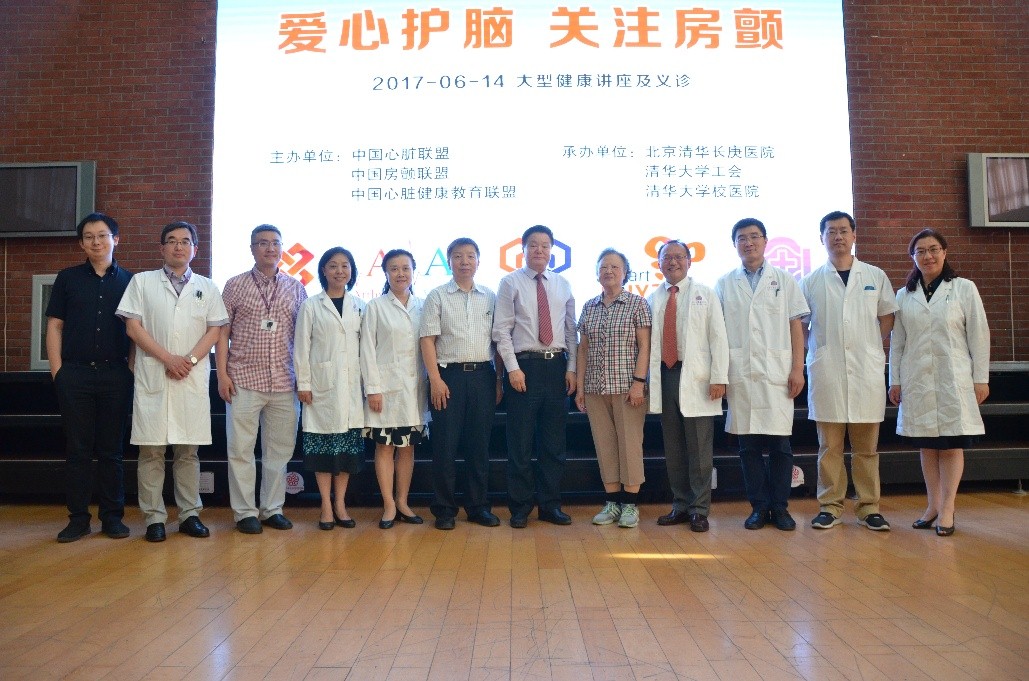 本次活动由中国心脏联盟、中国房颤联盟、中国心脏健康教育联盟主办,由北京清华长庚医院、清华大学校医院、清华大学工会联合承办。活动吸引了国内外房颤治疗的顶级专家参与,中国房颤联盟副主席、北京大学人民医院心脏中心副主任郭继鸿教授、陈琦玲主任医师,北京朝阳医院心脏中心主任杨新春教授,北医三院葛堪忆教授,美国梅奥诊所心脏中心主任、北京清华长庚医院心脏中心主任沈文光教授,清华大学校医院主任医师孙小苍等,与北京清华长庚医院心脏内科医师团队,现场为学校师生进行“房颤”主题知识讲座,并进行健康咨询。