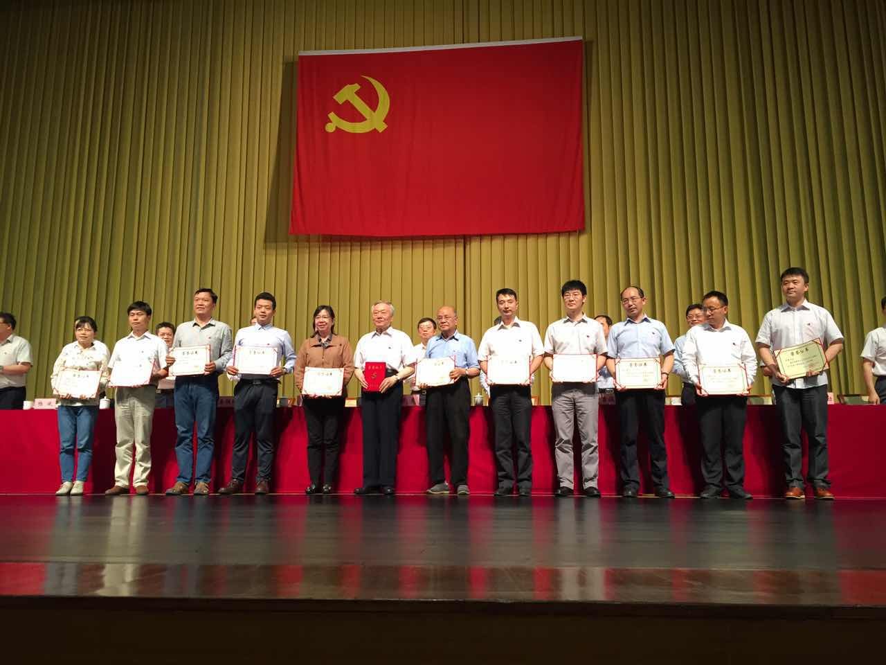 图为叶京英(左五)在清华大学党员表彰会上登台领奖