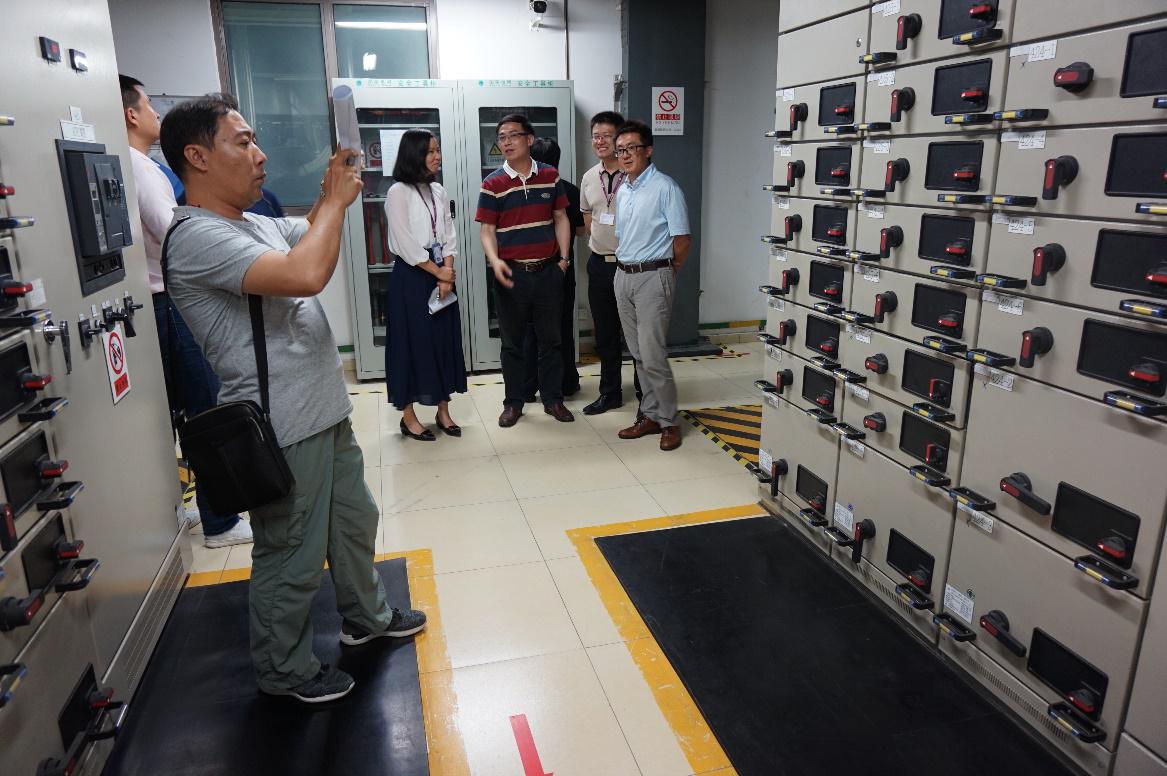 图2 参会人员参观我院2号楼主配电室(图/白鹤)