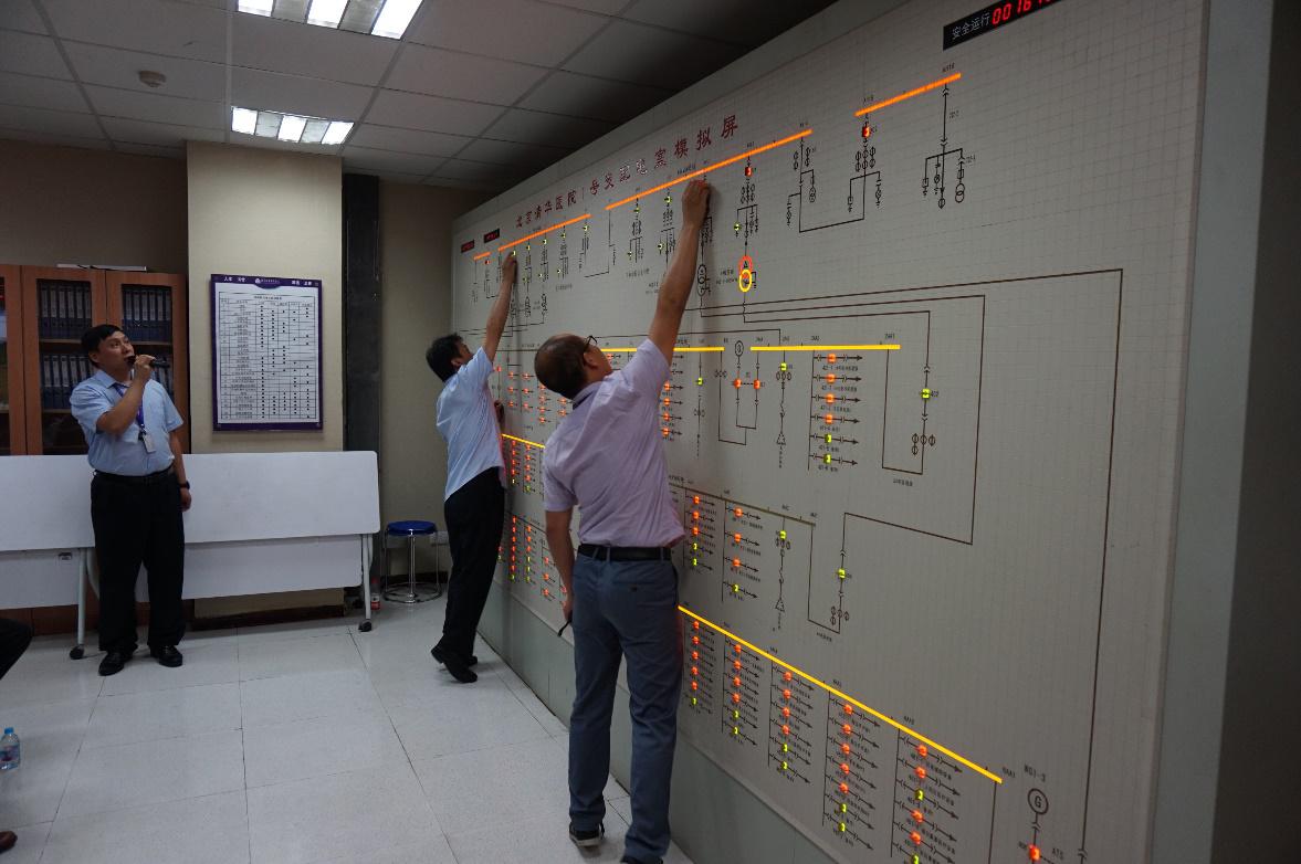 工务处赵琨浩处长作为此次停电演练的总指挥,首先对市医管局领导、国家电网北京电力公司专家及其他医院同僚的到来表示热烈欢迎,同时将医院的电力配备基本情况作了简单的介绍。医院目前有两个配电室,设计总容量为11400kvA,共有高压配电柜22面、低压柜72面、直流屏6面,供电方式为10KV、双路供电、分段运行。阐述此次应急演练的计划安排和演习程序后,一行人现场参观了医院2号楼主配电室。赵琨浩和工作人员现场介绍了我院配电室的基本情况和停电演练工作计划安排,还对观摩人员提出的关于巡检、试验、清扫及应急检修等问题都做出了详细的回答。