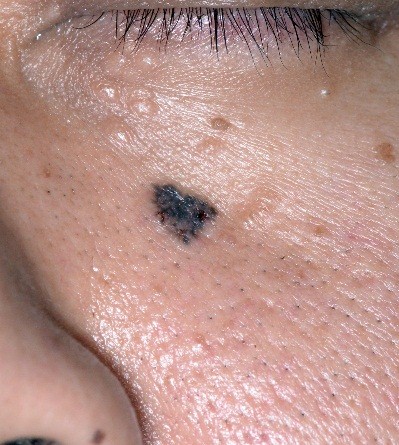 清华长庚医院7月5日电(皮肤科 黄晨昱)近日,皮肤科赵邑主任的门诊迎来一位年轻的男患者,“大夫,我脸上的痦子越长越大,太影响美观了。”只见该男士的左眼睑下鼻翼旁长有一黑色“痦子”,这枚形状怪异、呈褐色的“痦子”立马引起了赵邑的注意,经皮肤镜检查,初步诊断为“皮肤肿瘤”。
