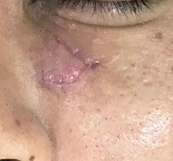 图3. 基底细胞癌彻底切除皮瓣覆盖拆线后