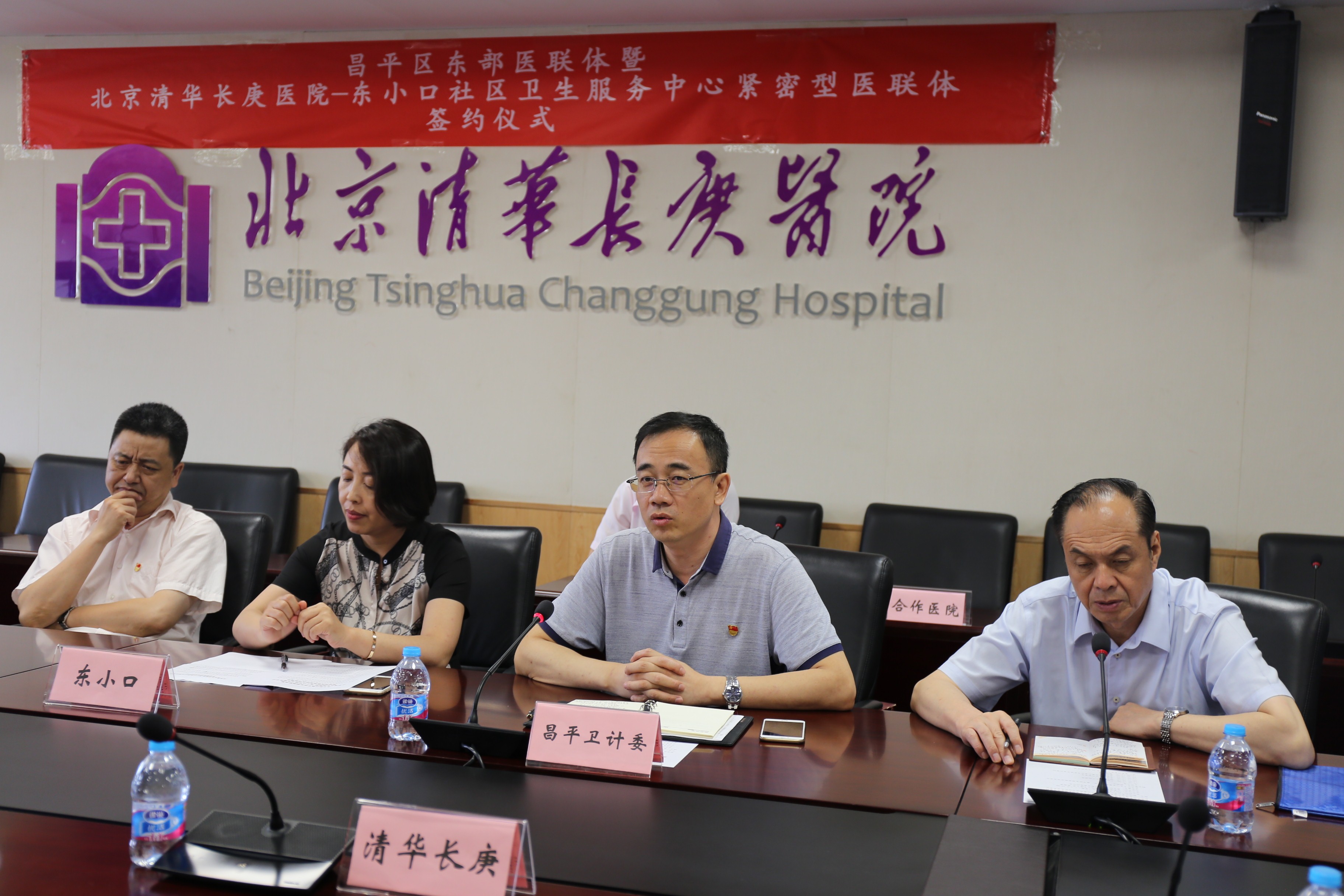 清华长庚医院7月18日电(通讯员 马龙男)7月18日,昌平区东部医联体暨北京清华长庚医院-东小口社区卫生服务中心紧密型医联体签约仪式在清华长庚医院举行,签约仪式由副院长王劲主持。昌平区卫计委副主任杨杰,北京清华长庚医院党委书记周月红、东小口社区卫生服务中心院长黄培,北七家社区卫生服务中心院长刘清香,王府中西医结合医院院长魏万林等共同出席了签约仪式。