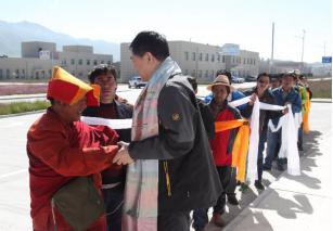 北京清华长庚医院援藏医疗团队圆满完成医疗任务,藏族同胞们听说专家团将要离开果洛,都自发组织成群结队地来到机场送机。一条条洁白的哈达被他们奉在手心,蓝天白云下,带着最虔诚的敬意和最美好的祝愿,和专家团成员们一同返回北京……