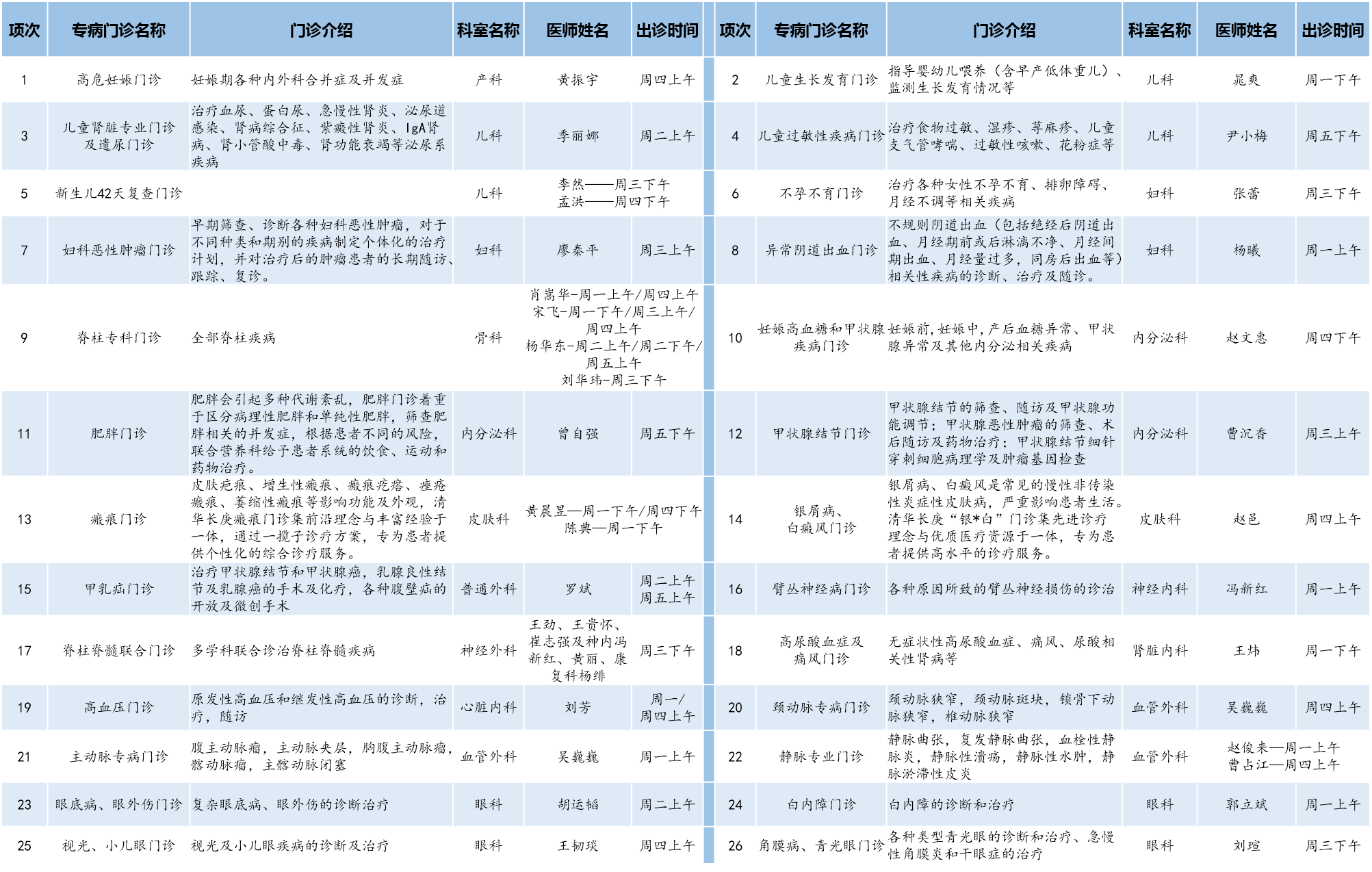 (北京清华长庚医院26个专病专症门诊详见附件1)