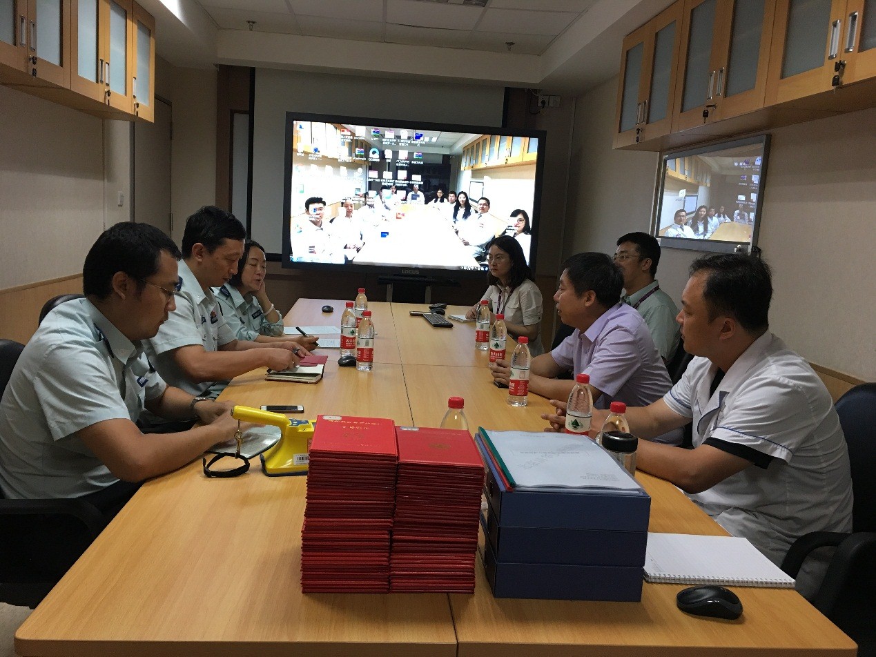 清华长庚医院8月17日电(医政组 王婷)2017年7月16日,北京市环境保护局放废中心陈东兵主任带队到北京清华长庚医院,对辐射安全管理工作进行监督检查,并指导我院辐射安全管理制度建设及放射性废物管理工作。副总执行长赵刚、医技部部长郑卓肇、医政组副组长张立东等接待一行。