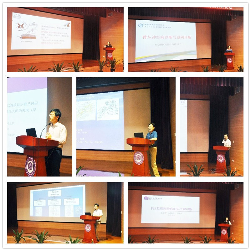 北京协和医院管宇宙教授、航空总医院邢岩主任出席论坛,分别从臂丛神经病变的神经电生理表现和临床诊断及鉴别诊断,详细介绍了该领域的专业基础及前沿进展。北京清华长庚医院医技部郑卓肇部长和超声科白志勇副主任医师,分别从臂丛神经病变诊疗的臂丛神经磁共振技术应用和臂丛超声影像学技术应用的角度,展示了此二项辅助检查技术在该疾病诊断的实用基础和发展现状;而骨科主任医师潘勇卫教授和神经外科郭毅主任医师,则从临床实践及具体病例角度,分别阐述了臂丛神经疾病和椎间孔周围神经相关肿瘤的的外科治疗内容。冯新红副主任医师对卡压性周围神经病的电生理诊断进行了扩展介绍,并对北京清华长庚医院臂丛神经病变诊疗中心近年来诊治病例的成果做了全面而细致的总结汇报。