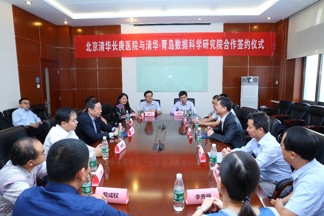 清华长庚医院9月20日电 9月20日上午,清华大学附属北京清华长庚医院(以下简称“清华长庚医院”)与清华-青岛数据科学研究院(以下简称“数据院”)的合作签约仪式在清华大学隆重举行。医院执行院长董家鸿、医技和信息管理处代表,数据院执行副院长韩亦舜、医疗健康大数据研究中心代表、RONG教授、医学院代表、数据执行团队代表出席此次签约仪式。