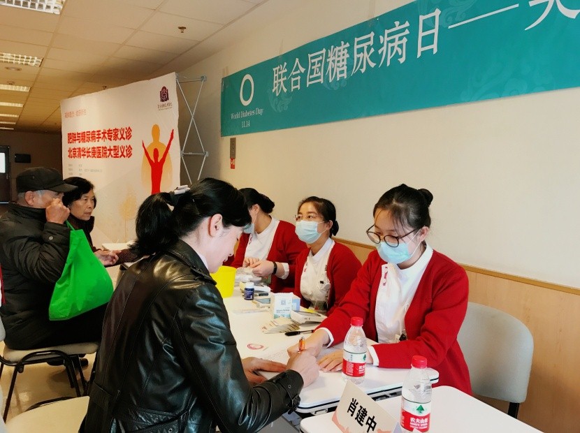 在义诊咨询环节,北京清华长庚医院内分泌科护理人员为患者免费测量血糖、发放健康宣传手册,内分泌科主任肖建中、妇产科副主任医师张蕾、营养师李世阳、糖尿病个案管理师李彩宏现场接受了患者糖尿病相关咨询。