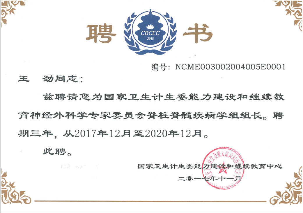 北京清华长庚医院12月13日电(神经外科 荆林凯)2017年12月1日,国家卫生计生委能力建设和继续教育神经外科学专家委员会(以下简称“专委会”)在深圳成立,设立了神经创伤、神经肿瘤、脑血管病等10个学组,清华大学附属北京清华长庚医院副院长王劲受聘为脊柱脊髓疾病学组组长,同时,北京清华长庚医院成为国家卫生计生委能力建设和继续教育中心神经外科脊柱脊髓CME培训基地。专委会成立后的第一次工作会议同期召开。