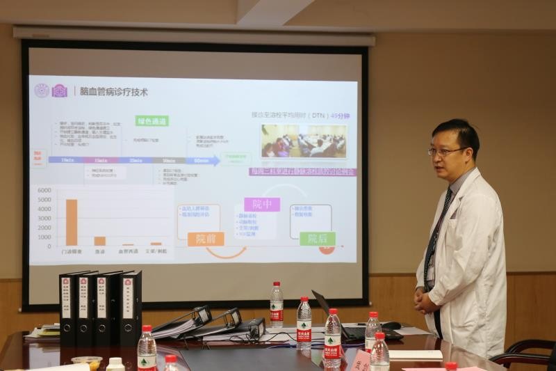 评审会上,武剑主任进行了关于卒中中心建设的工作报告。随后评审专家组对医院卒中中心的管理制度、组织架构、绿色通道、区域化卒中带动作用、技术开展、培训教学及健康管理等各个层面进行了现场审查。