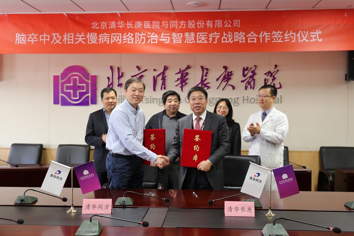 北京清华长庚医院1月17日电(神经内科 魏宸铭)2018年1月16日上午,清华大学附属北京清华长庚医院与清华同方股份有限公司(以下简称“清华同方”)签订合约,启动脑卒中及相关慢病网络防治与智慧医疗战略合作项目。