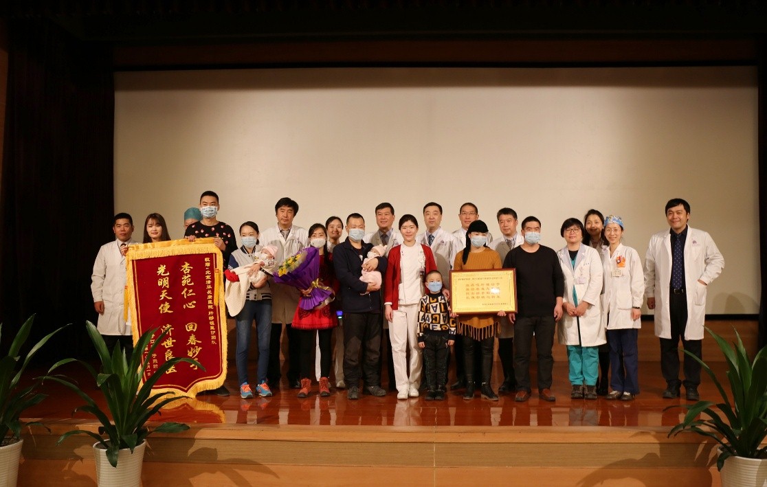 图为部分肝脏移植团队医务人员与出院的患者合影