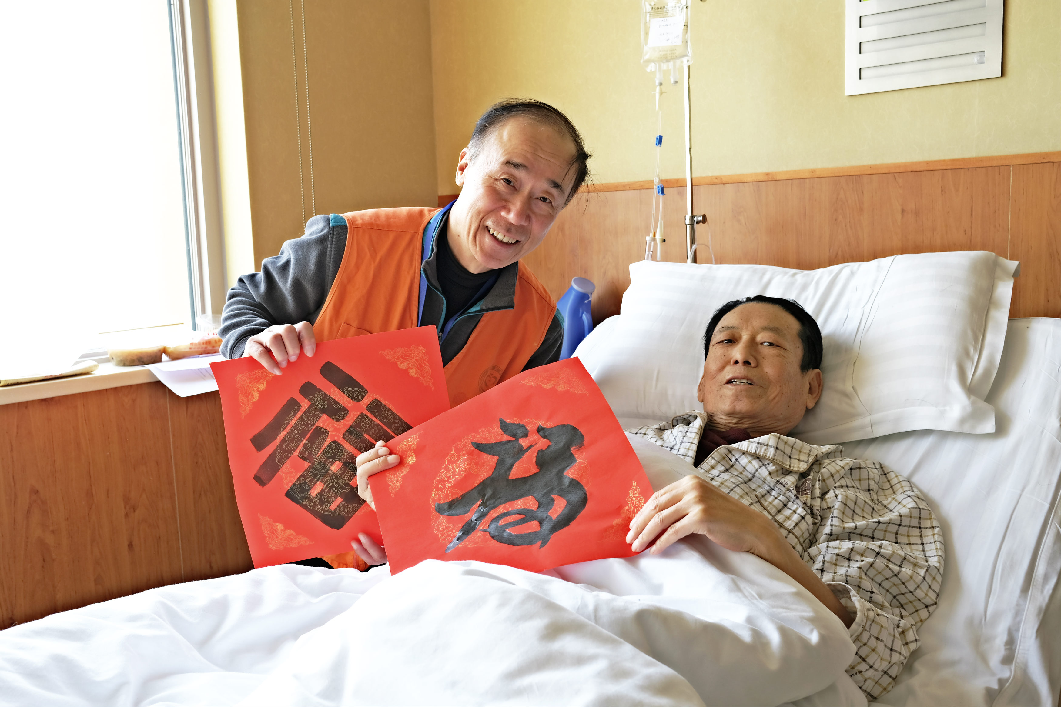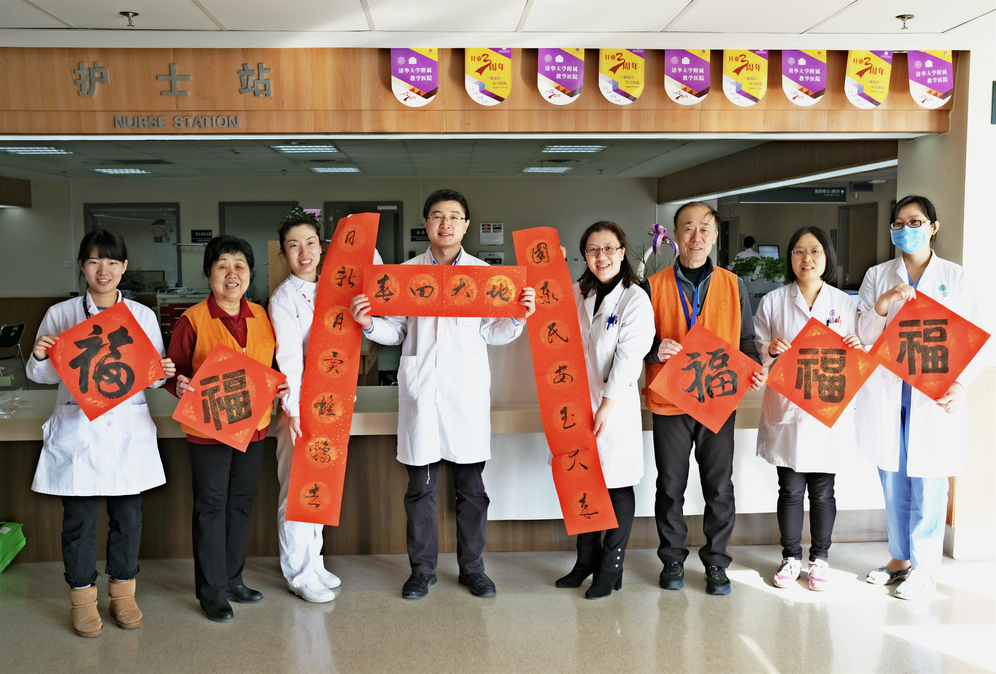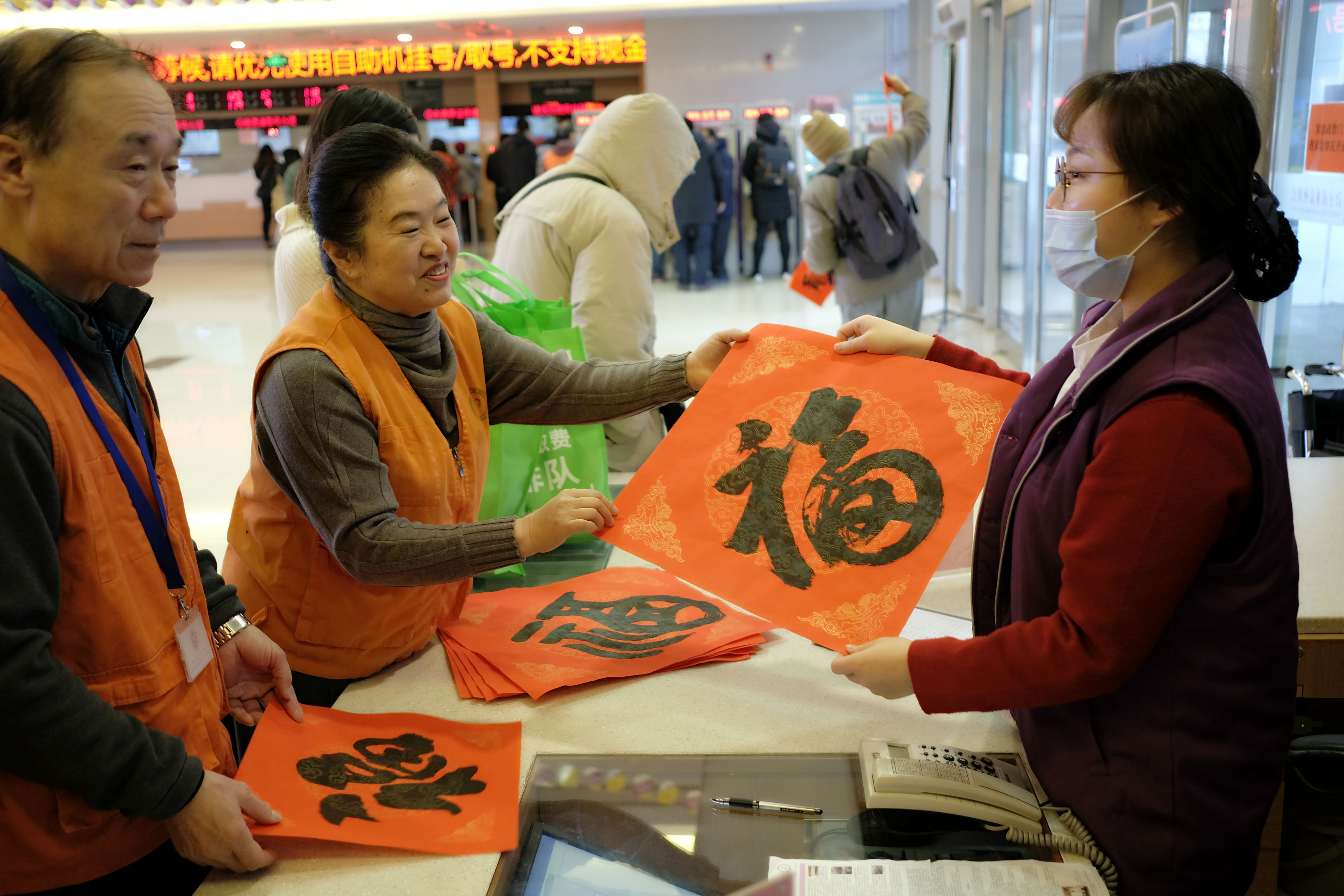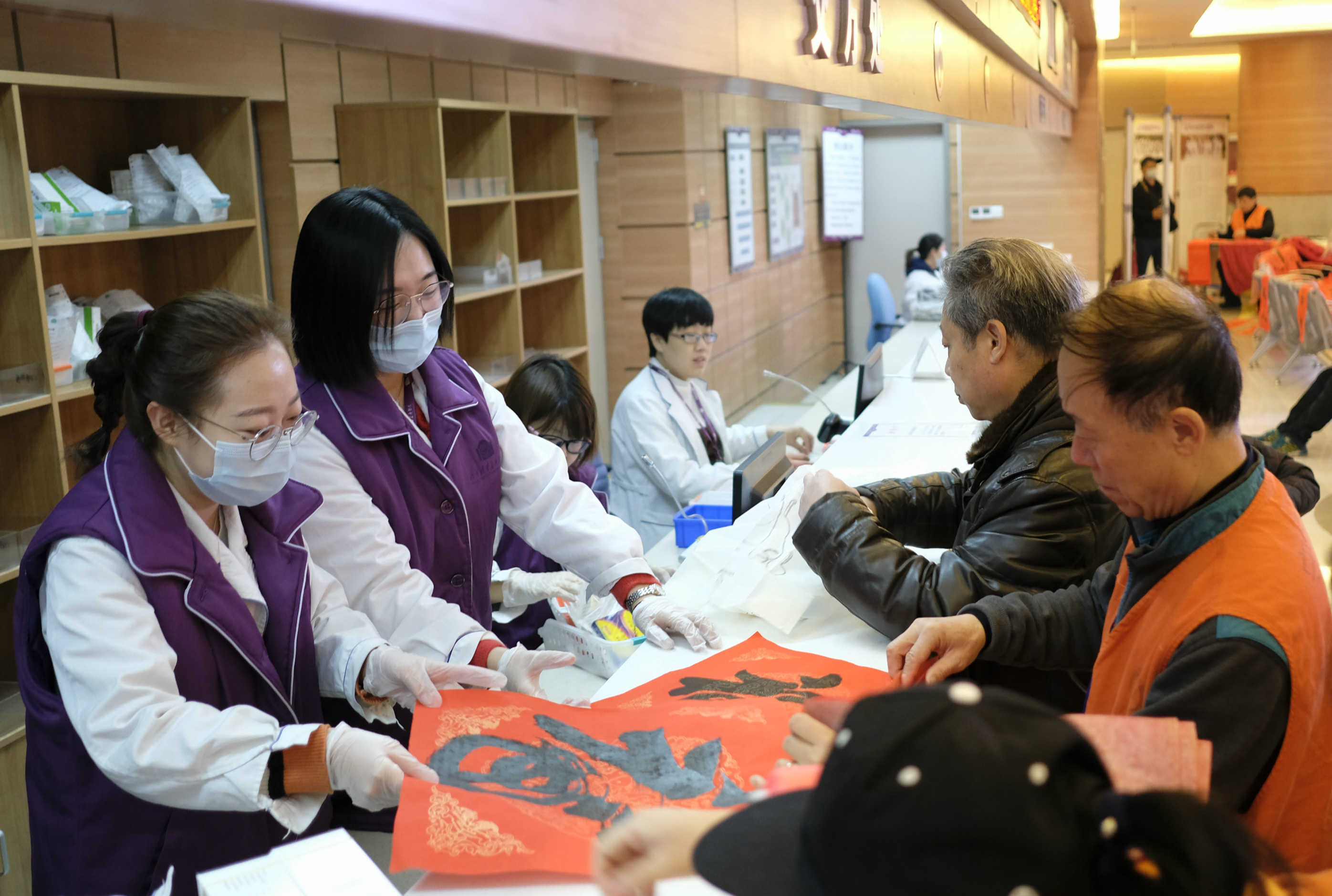 与此同时,在门诊诊间、住院病房,志愿者的服务团队也已经抵达。他们将刚刚写就、飘着墨香的春联送到临床一线,将红红火火的祝福一一传递。“一些患者虽然没法回家过年,但我们会陪伴着他们,希望他们在医院也能感受到过年的气息。”一位病房护士说道。