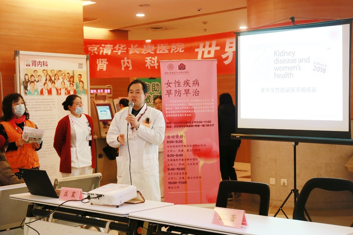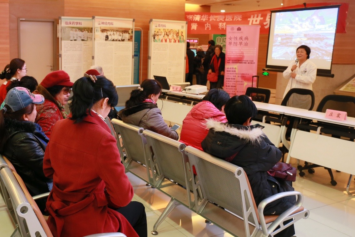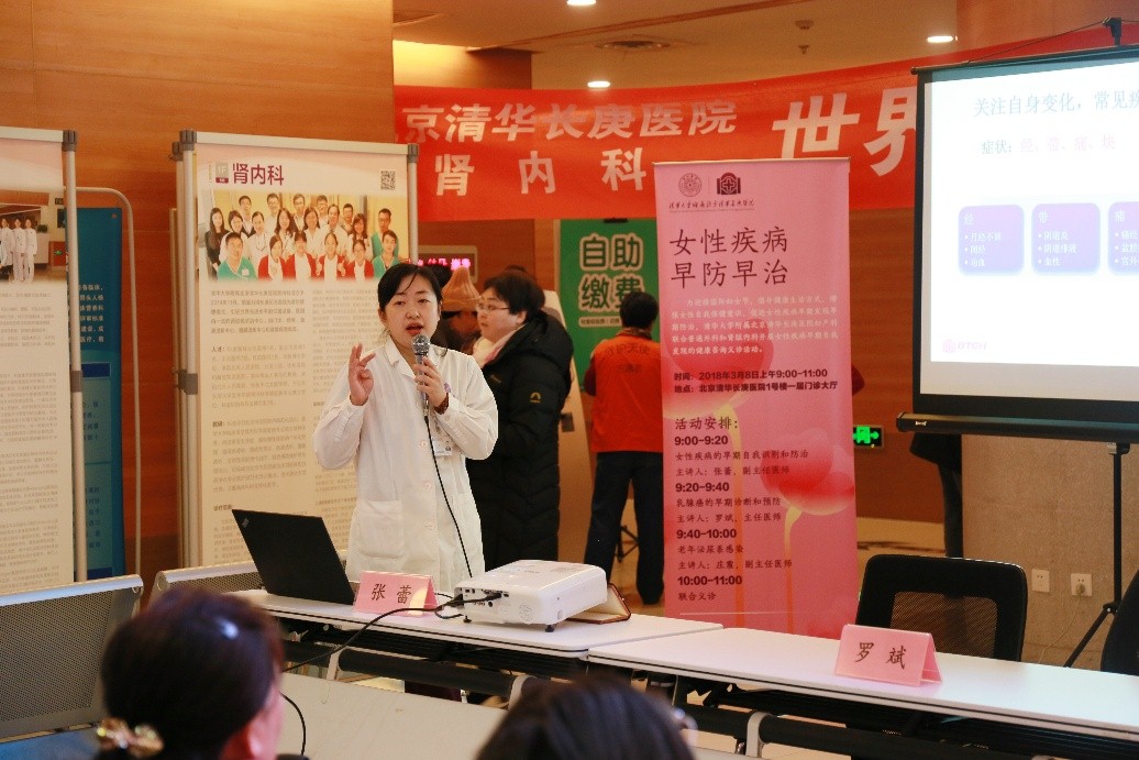 北京清华长庚医院3月8日电(通讯员 韩冬野)地球上约一半的人口是女性,现代社会的女性与男性一样,承担着社会、工作、家庭等方方面面的压力。3月8日为国际劳动妇女节,今年又恰逢世界肾脏日,北京清华长庚医院为妇女们打造了一堂丰富的选修课,并发出号召“心疼自己从健康开始!”妇产科、普外科、肾脏内科10余名医师倾情出动,为女生们进行免费的健康咨询。