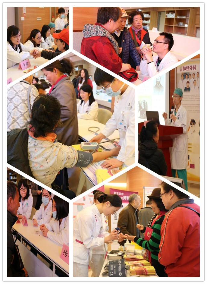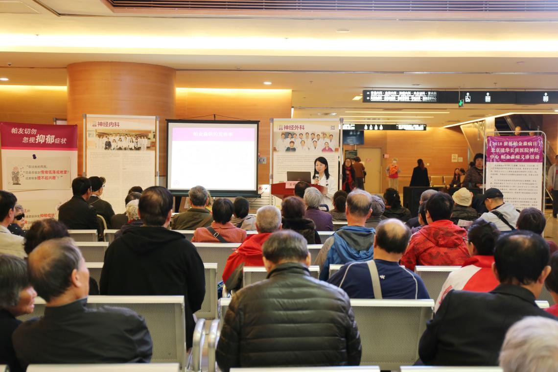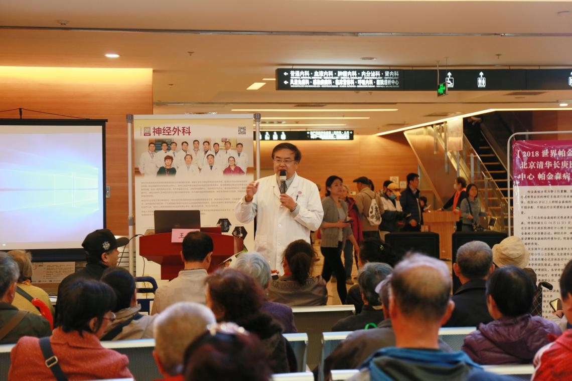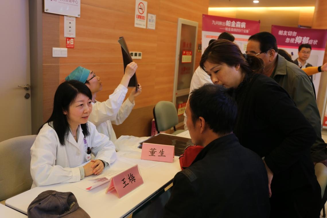 此外,在帕金森病日当天,北京清华长庚医院神经内外科联合为居民进行义诊,王梅医师、神经外科董生医师分别进行了科普讲座,董生医师详细介绍了植入脑深部磁刺激器(脑起搏器)治疗帕金森病的手术指正及治疗效果等。神经中心医师为居民进行现场健康咨询、简单查体,护理人员为收听讲座的居民们进行义务测血压、血糖服务。