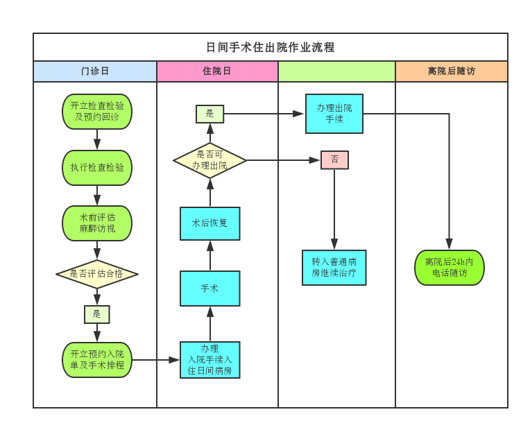 日间手术(Day Surgery) 是指患者在24小时内完成入院、手术、出院的一种手术模式,不包括门诊手术。因其效率高、费用低,现已成为许多国家广泛应用的管理模式,在英国和美国,日间手术占择期手术的比例高达70%和80%。