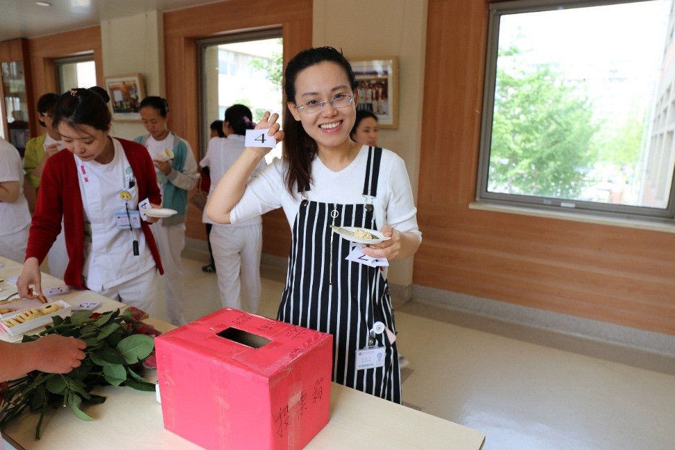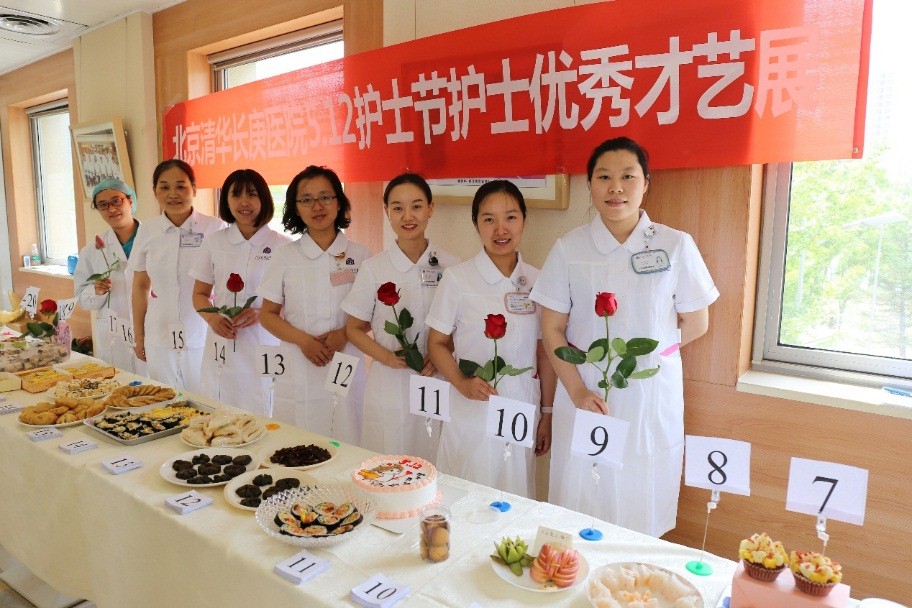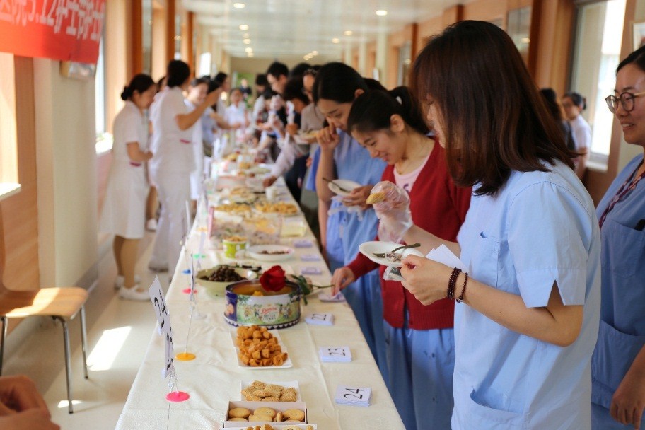 北京清华长庚医院5月7日电(护理部 李文静)为庆祝国际护士节,5月7日中午,清华大学附属北京清华长庚医院护理部举办了一个特别的“美食节”。琳琅满目的蛋糕、点心全部为护士们亲手制作,拉开了“北京清华长庚医院5.12护士节护士优秀才艺展”的序幕。经过医院职工和公众的试吃投票,最终将评选出两名“金厨奖”获得者,由护理部颁发奖品。