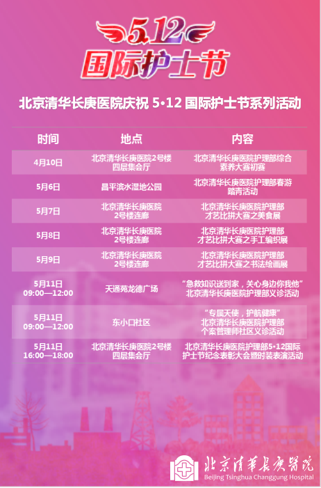 每年5月12日是国际护士节,是为纪念现代护理学科的创始人弗洛伦斯·南丁格尔于1912年设立的节日,其基本宗旨是倡导、继承和弘扬南丁格尔不畏艰险、甘于奉献、救死扶伤、勇于献身的人道主义精神。为鼓励护理人员爱岗敬业,展现护士多才多艺的风貌,增进职工之间的交流互动,北京清华长庚医院将开展护士节系列活动,欢迎大家关注并参与。
