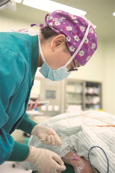 马燕利告诉记者,为患者进行麻醉的过程就好比驾驶飞机从起飞到降落的过程,“麻醉的诱导、维持、苏醒三个阶段中,要一直监护患者生命体征,保障患者生命安全。”利多卡因4毫升、咪达唑仑2毫升……在麻醉医师的指挥下,马燕利依次把手术前准备好的麻醉用药通过一次性三通阀注射到患者体内,并安慰患者“不要紧张,困了就睡会儿”。