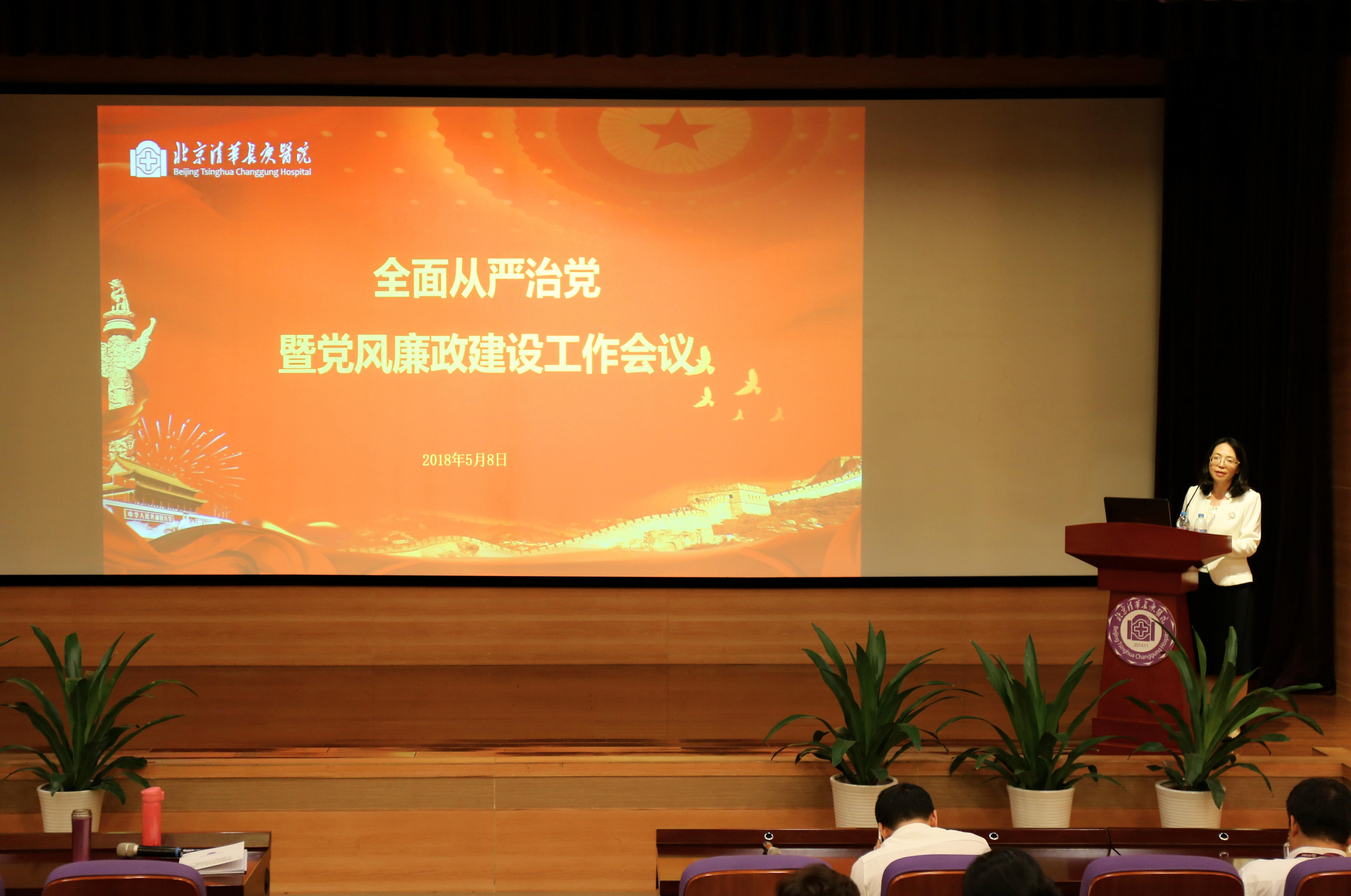 北京清华长庚医院5月11日电(通讯员 王思扬 刘妍君)5月8日,清华大学附属北京清华长庚医院召开全面从严治党暨党风廉政建设工作会议。院党委书记周月红传达了清华大学全面从严治党工作会议精神并部署相关工作。纪委书记陈旭岩、副院长王劲分别作了警示教育报告与行风制度宣导。院级领导,各临床科室主任,各党支部书记、团委书记,各医技、护理、行政部门主要负责人以及工会代表等共100余人参加会议。