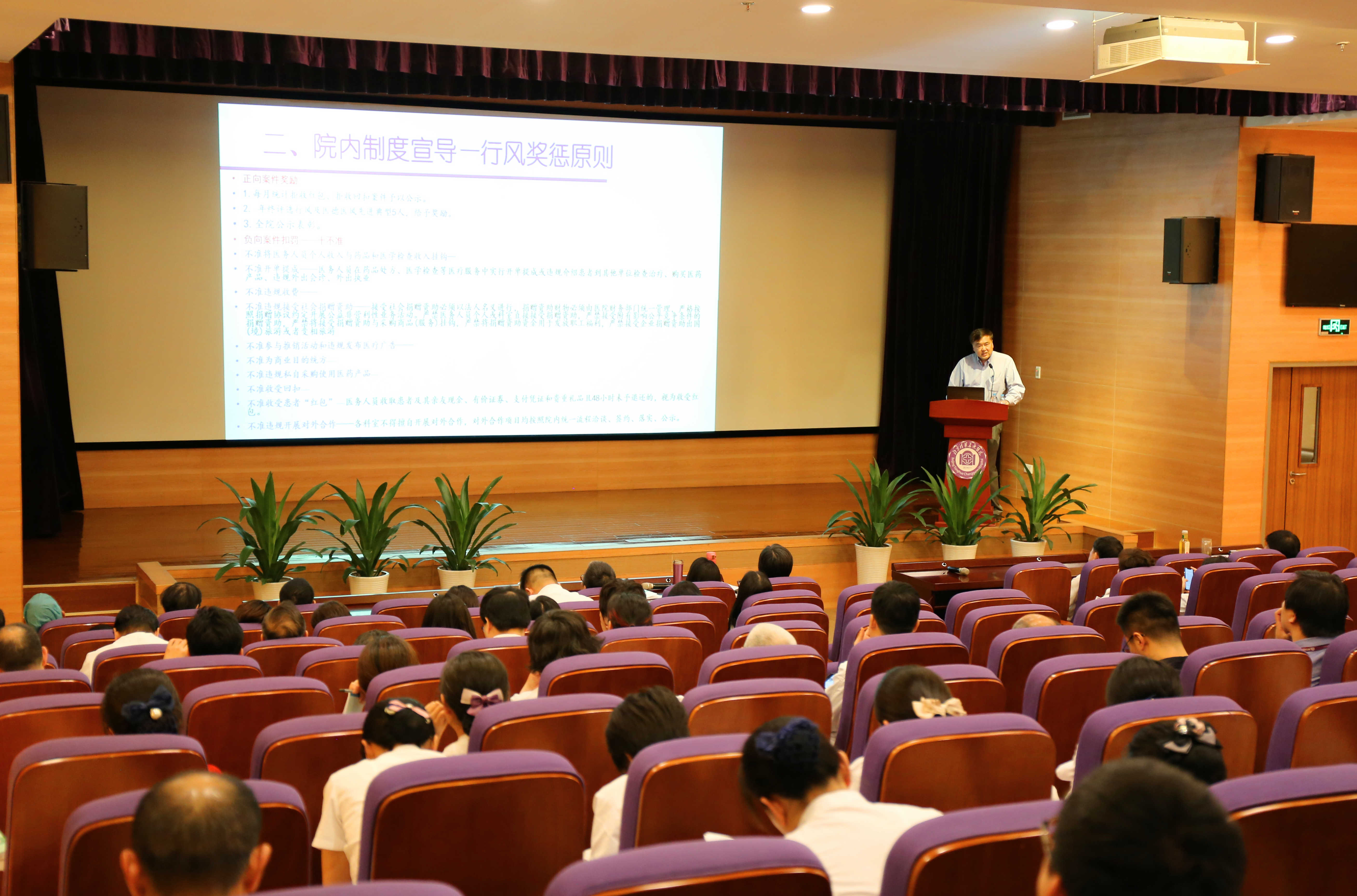 王劲向与会人员宣导了行风相关政策以及院内奖惩原则,强调要以贯彻落实“九不准”为抓手,规范办医行医行为,将行业作风建设要求纳入深化医药卫生体制改革中,严肃纪律,明确责任,有效落实,进一步推进我院行风建设,全心全意为人民群众提供安全、有效、方便的健康服务。