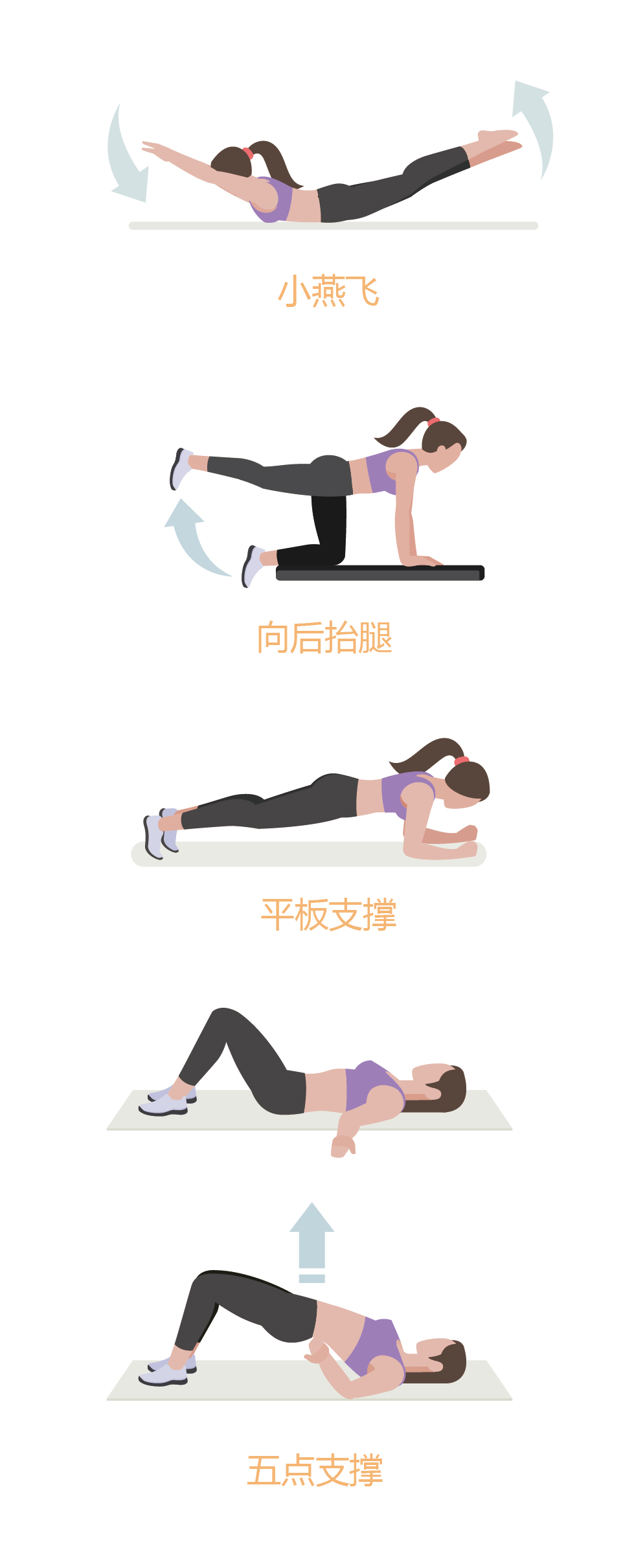 1、“小燕飞“。这简直就是网红锻炼方式,简单有效,但是对体力有所要求。趴在床上,胸腹部接触床面,头部和四肢绷直向上翘,坚持5-10秒钟,反复操作。每次5-15分钟,适合体力较好的中青年人群,睡前和早起各做一组很方便。