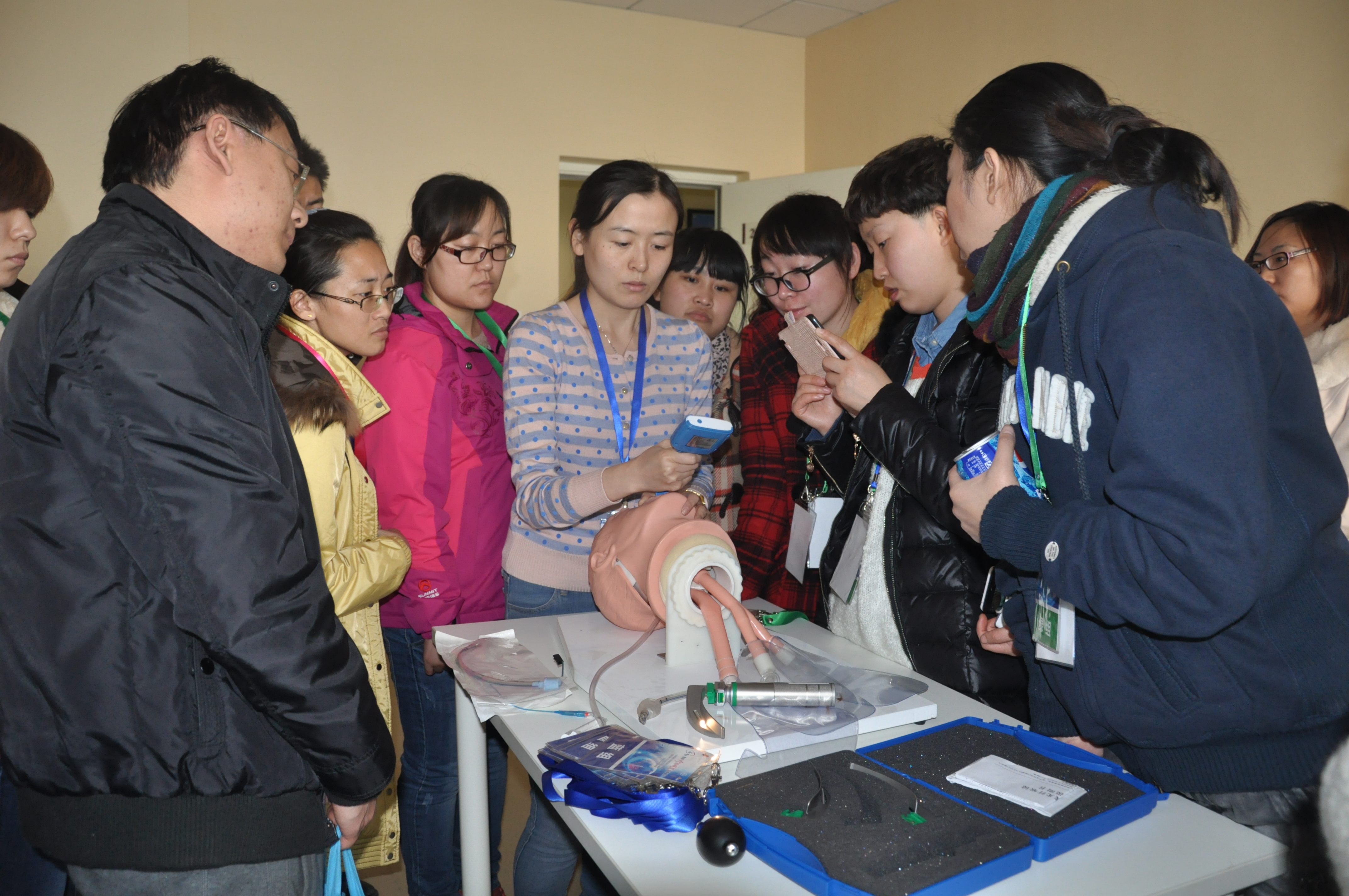 青年医师正在讲授气管插管术