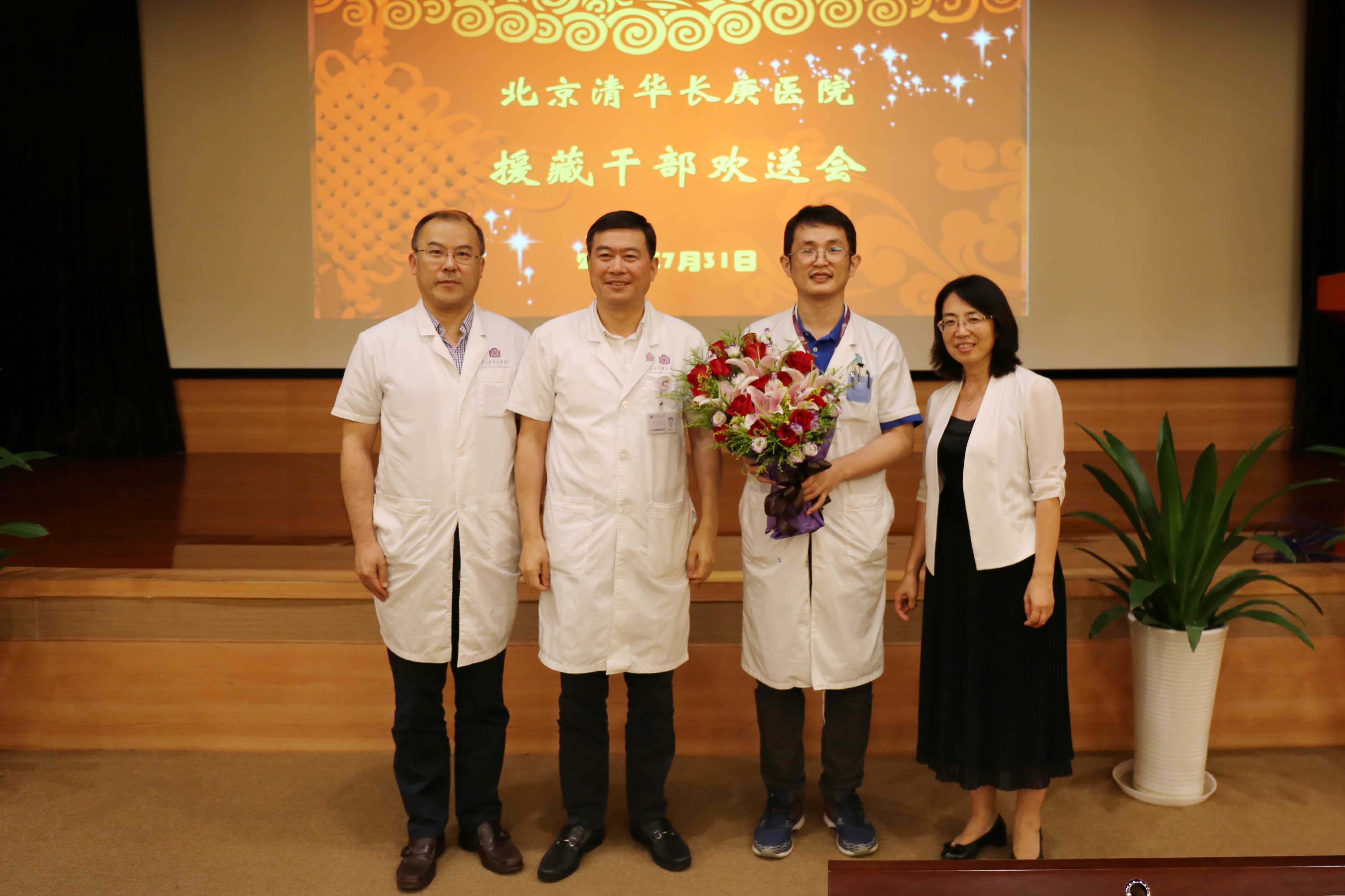启程前,医院召开“付猛医师援藏欢送会”,全体院班子成员、各科室和行政部门主管参会。欢送会由院纪委书记、党委副书记陈旭岩主持,回顾了我院自建院以来历次选派优秀干部对外援助经历,并介绍了此次援助任务的具体情况和付猛医师的情况。付猛医师在会上致谢医院和科室领导同仁对自己的培养和信任,并表示自己会不辱使命代表医院践行清华长庚人精准医疗扶贫的社会责任。
