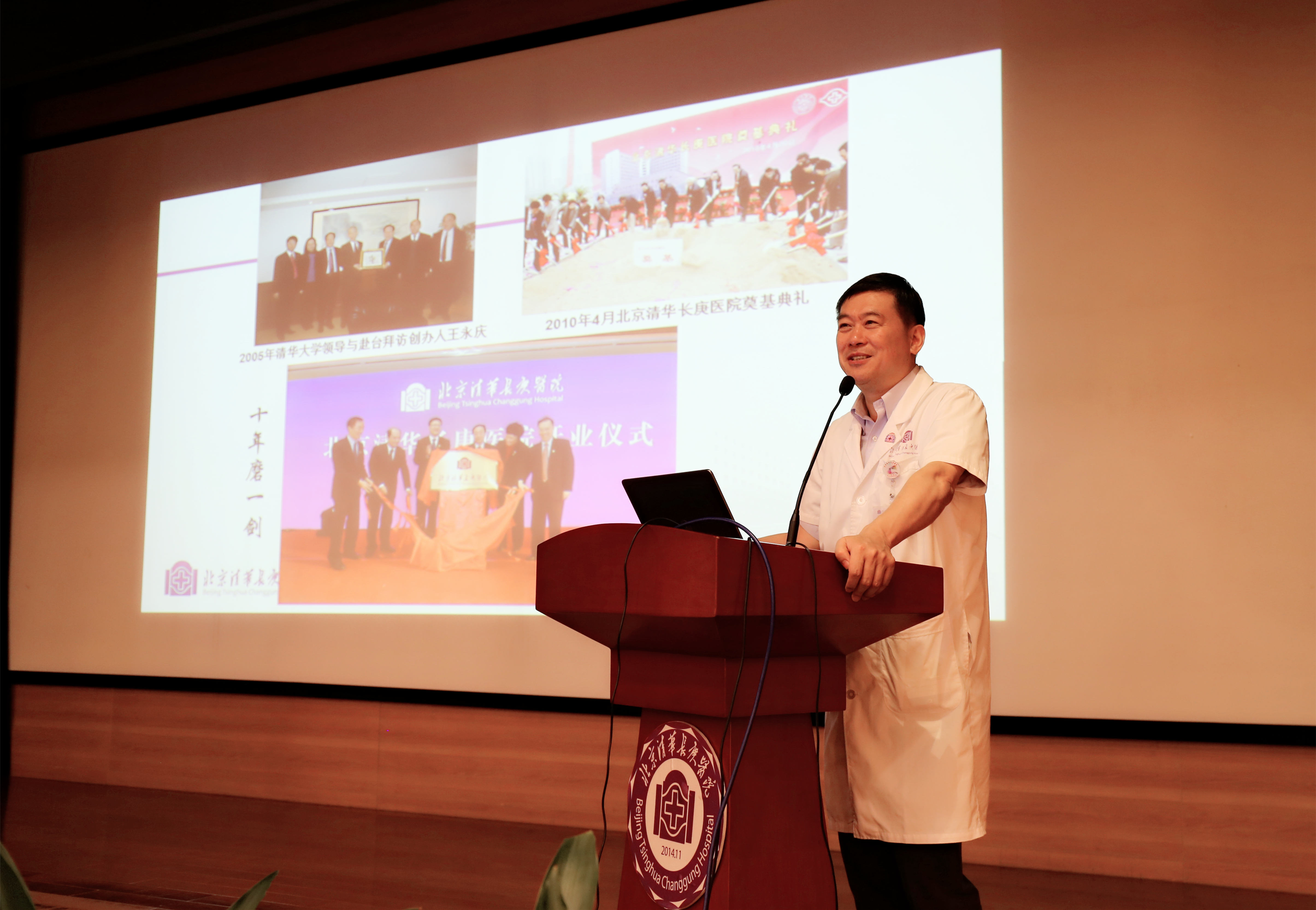 总执行长郭明和着重介绍了清华长庚医院借鉴台湾长庚纪念医院的先进经验,构建的现代医院运行模式与管理特点,表达了台塑集团创办人王永庆先生在捐建清华长庚医院时造福大陆民众的期望,并对新员工未来的工作提出要求和期待。