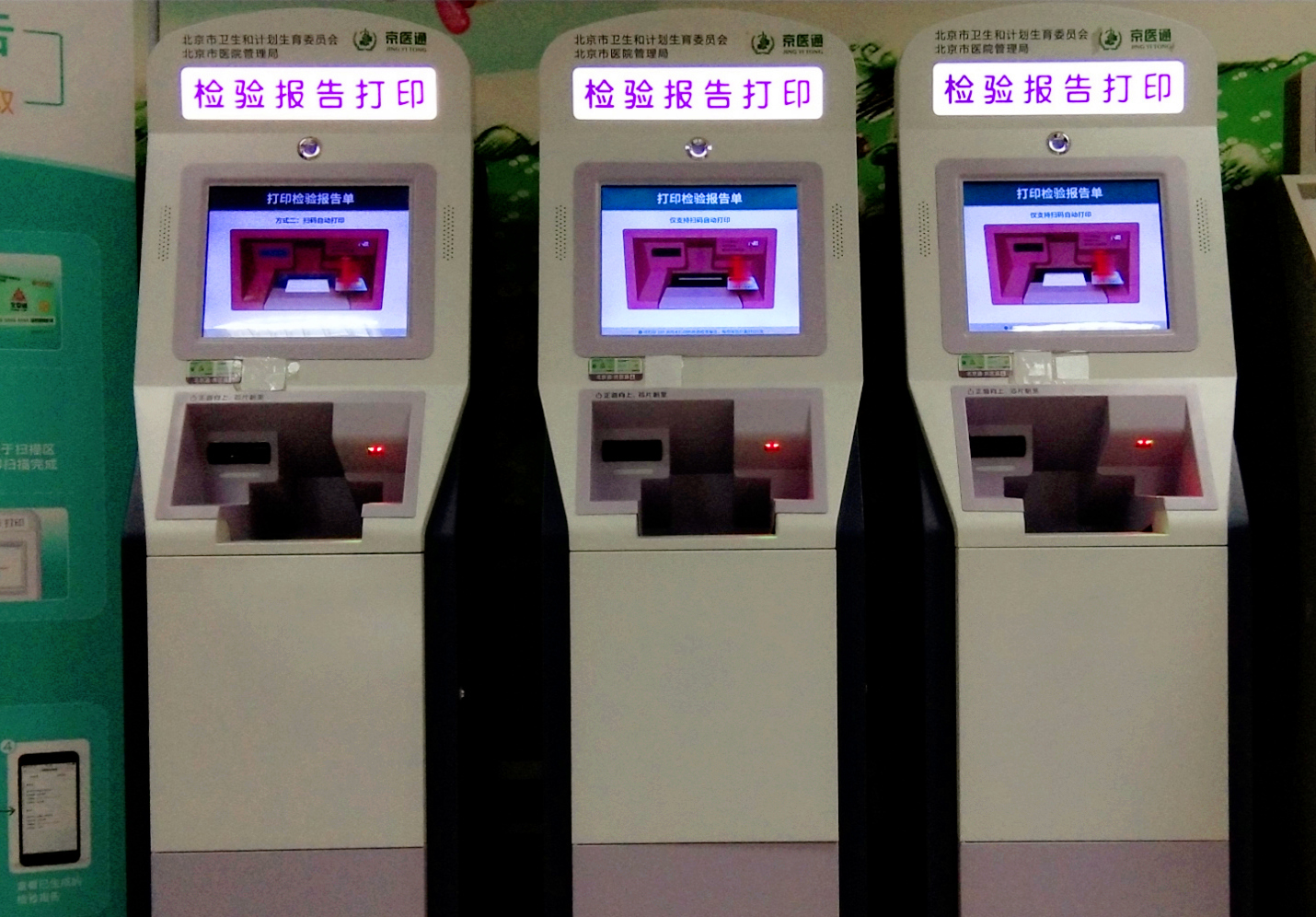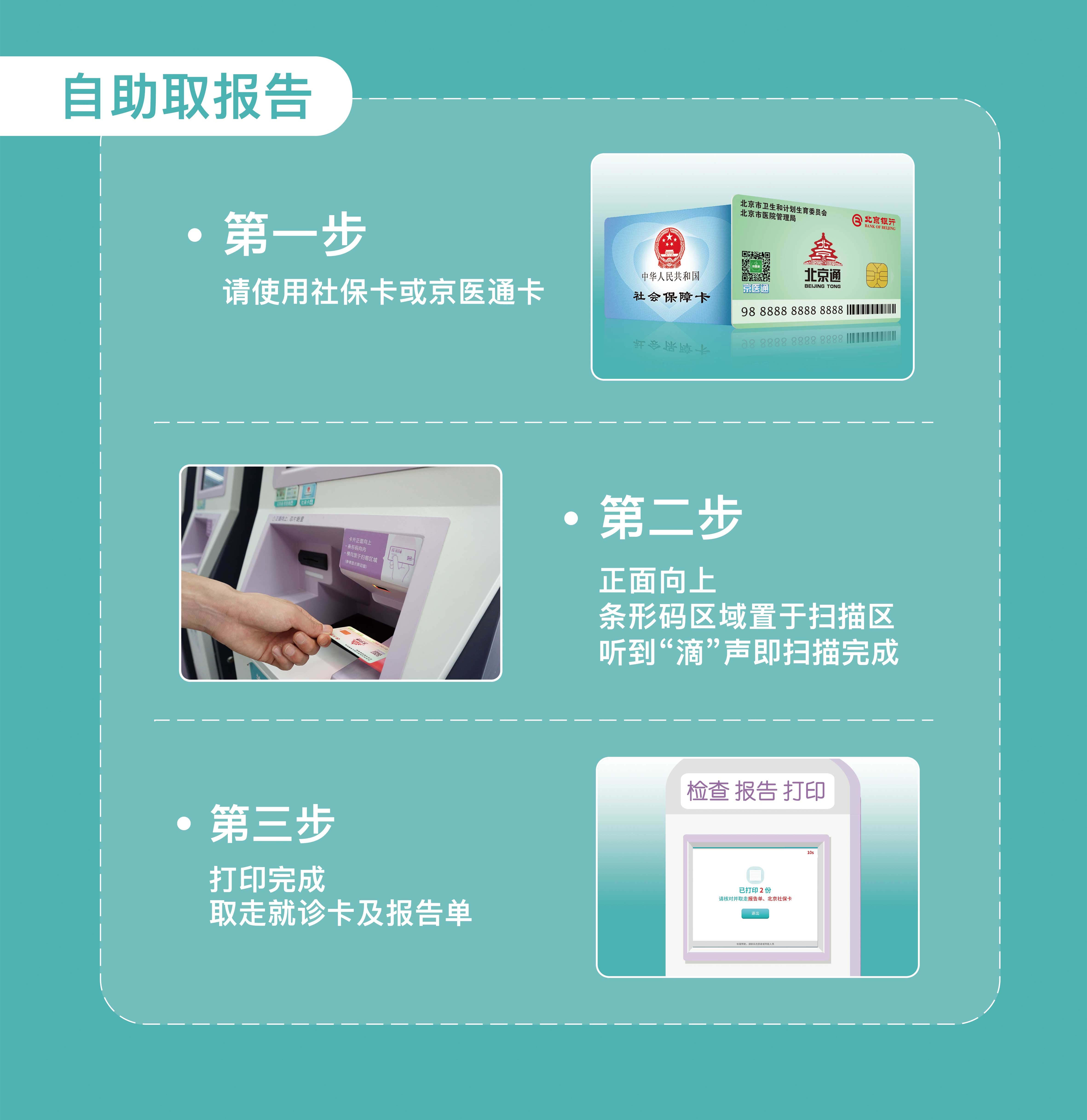 北京清华长庚医院的自助报告打印机位于1楼门诊大厅扶梯西侧,患者持社保卡或京医通卡即可自助打印检验报告单。