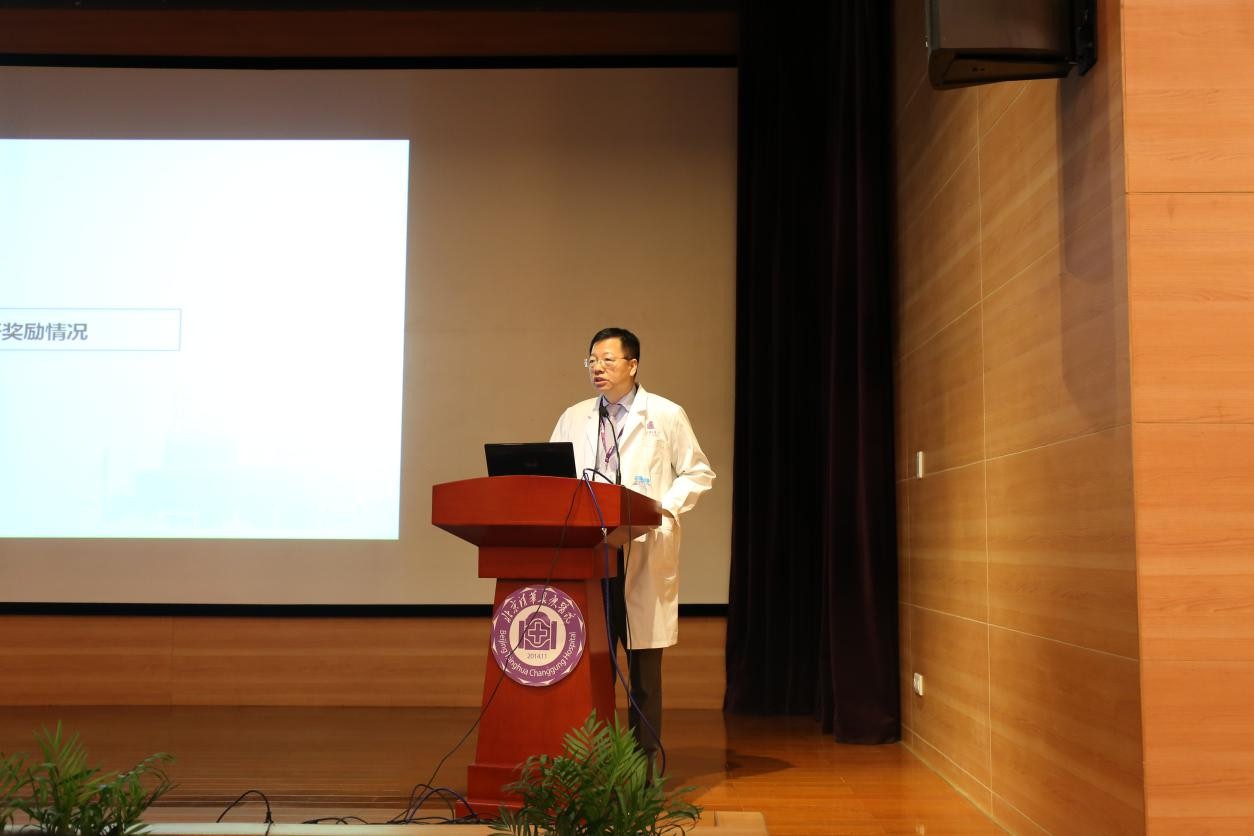 徐沪济副院长对本院2016~2017年度科研奖励情况进行报告,对在科研工作中做出突出成绩的科研工作者予以奖励,累计金额300余万元,包括国家自然科学基金立项匹配经费、论文奖励和专著奖励等。随后,徐沪济副院长就医院科研工作情况进行专题报告,在总结近一年科研工作情况的基础上,充分肯定我院在健全科研管理制度体系、临床试验机构建设、科研立项与论文、科研平台建设、人才培养方面的工作,同时指出,对比市属同侪医院,本院科研工作仍处于起步阶段,需引起全院重视,加快科研创新的步伐,进而部署了近期科研重点工作。
