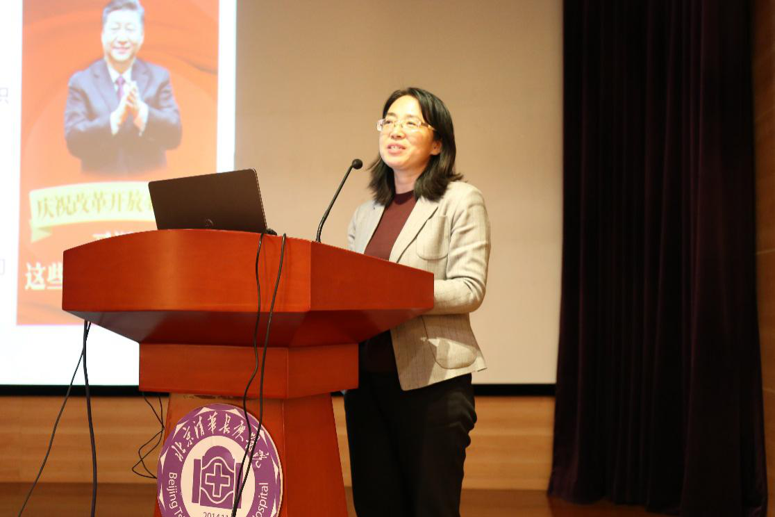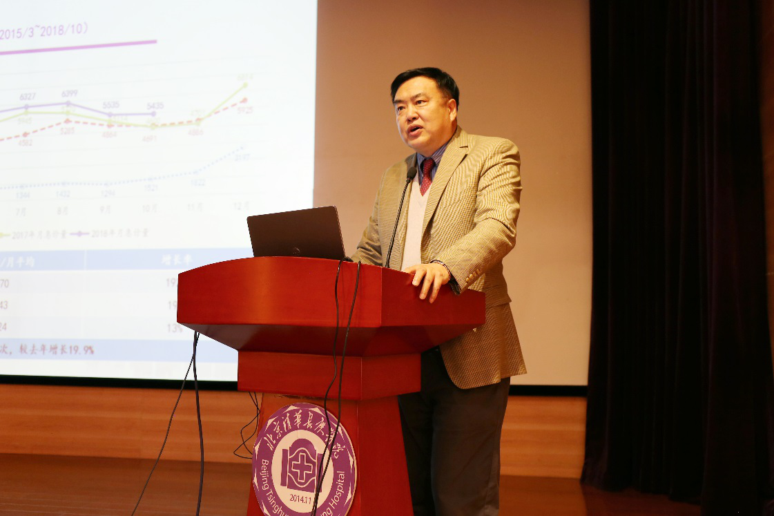 王劲副院长对全院的医疗工作进行了全面总结。内容包括医院整体服务情况、品管中心开展的工作、医院新开展的医疗技术、整合式医疗发展情况、2018年医管局评核情况、社服及公益性工作的发展情况等,同时也指出其中的不足和改善建议。值得一提的是,我院上半年综合患者满意度在北京市医管局系统医院排名第一。同时,医院在医疗、教学、科室运营、人才引进与培养等方面均收获了很多荣誉,如获批2022年冬奥会场馆医疗保障牵头医院;获批“肝脏移植”资质并成功开展了百例肝移植手术;15个专业获批国家药品监督管理局药物临床试验机构资格认定;《精准肝脏外科学》获2018年度国家出版基金重点项目资助;肝胆普通外科、泌尿外科、神经内科分别入选中国医院科技影响力排行榜和复旦华北区医院专科声誉排行榜;董家鸿执行院长、心脏内科张萍主任、耳鼻咽喉头颈外科叶京英主任、骨科肖嵩华主任、儿科晁爽副主任等获得了多项个人荣誉等。