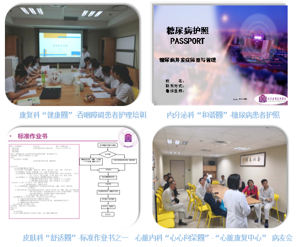 首先出场的是4个临床主题品管圈。来自康复科的“健康圈”展示了“提高脑卒中吞咽障碍患者诊治流程完善率”的活动成果,该活动完善了吞咽障碍诊治流程,进步率达47.10%。来自内分泌科的“和谐圈”展示了“提高门诊初诊2型糖尿病患者规范化管理完整率”的活动成果,通过发放糖尿病患者护照等措施, 内分泌门诊初诊2型糖尿病患者规范化筛查完整率提高至60.3%。来自皮肤科的“舒适圈”展示了“降低皮肤科门诊患者治疗时的疼痛”的活动成果,该活动仔细调查了皮肤科门诊患者疼痛原因,制定了多项操作的标准作业书,将疼痛率由16.1%降低至4.3%。来自心内科的“心心向荣圈”展示了“提高心内科介入手术患者接受正确治疗的依从性”的活动成果,展示过程精彩,该活动也体现了患者健康教育工作的重要意义。