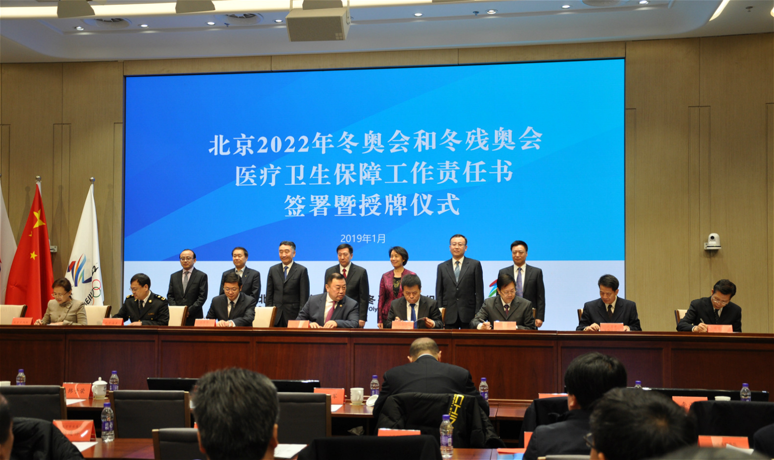 北京清华长庚医院1月24日电(通讯员 张燕)2019年1月24日,在北京冬奥组委会议楼一层多功能厅举行了《北京2022年冬奥会和冬残奥会医疗卫生保障工作责任书》《北京2022年冬奥会和冬残奥会主办城市公共主管机构医疗/健康相关保障工作责任书》签署及定点医院授牌仪式。