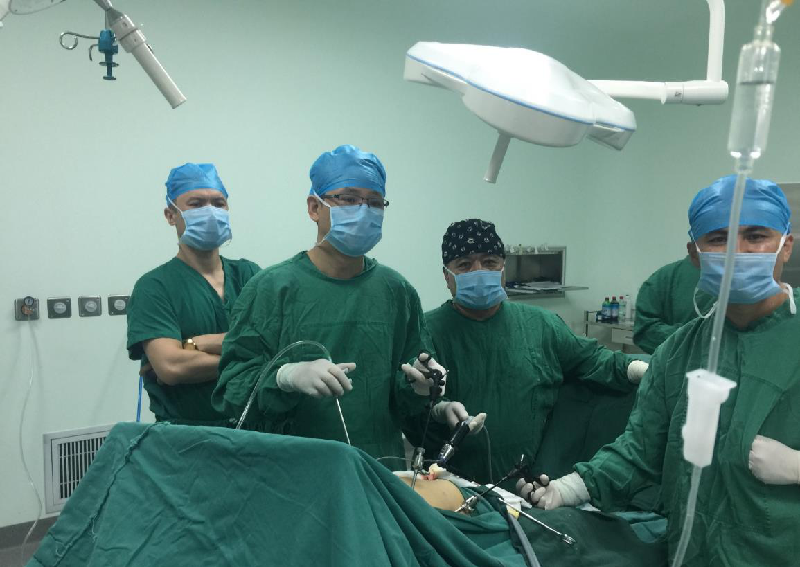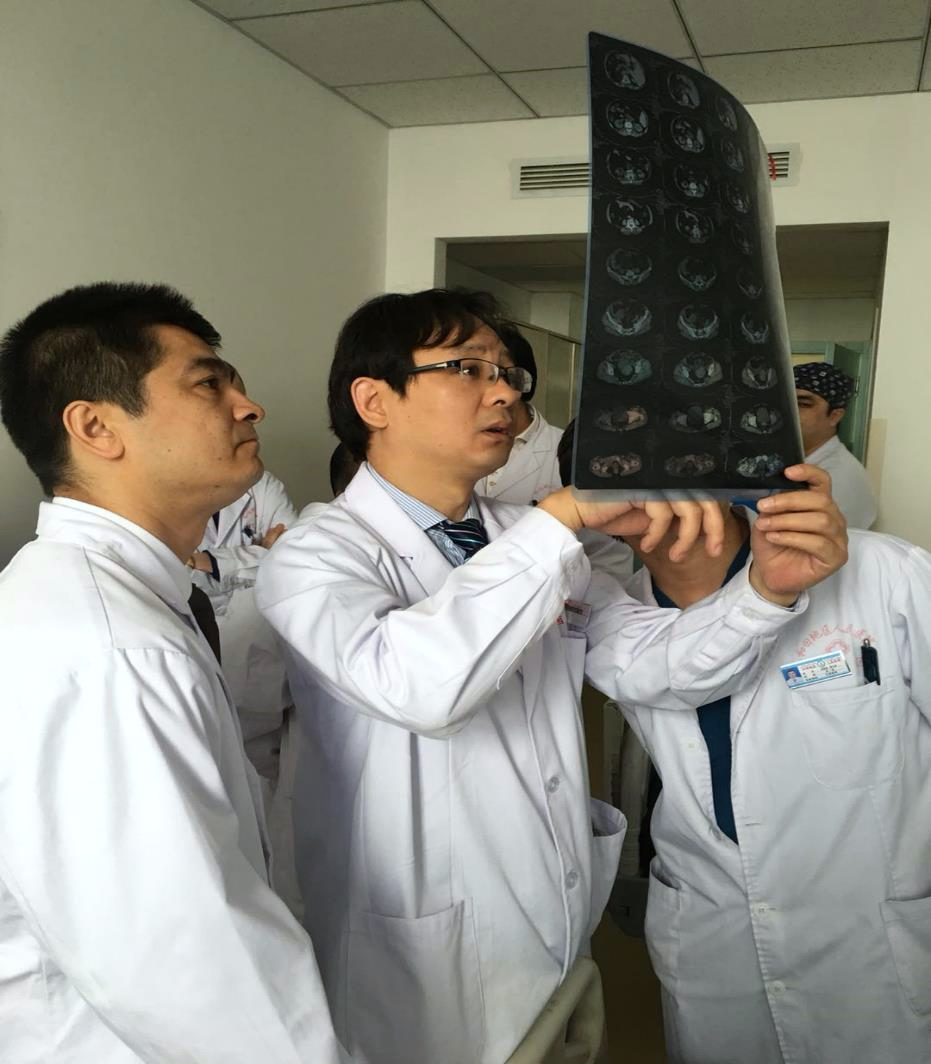 针对当地常见多发病胆石症,我帮助他们开展腹腔镜下胆总管探查取石一期缝合术,主刀完成和田首例肝内胆管结石的扩大左半肝+胆管空肠吻合术,和田首例损伤性胆管狭窄的规则性肝右前叶切除术。