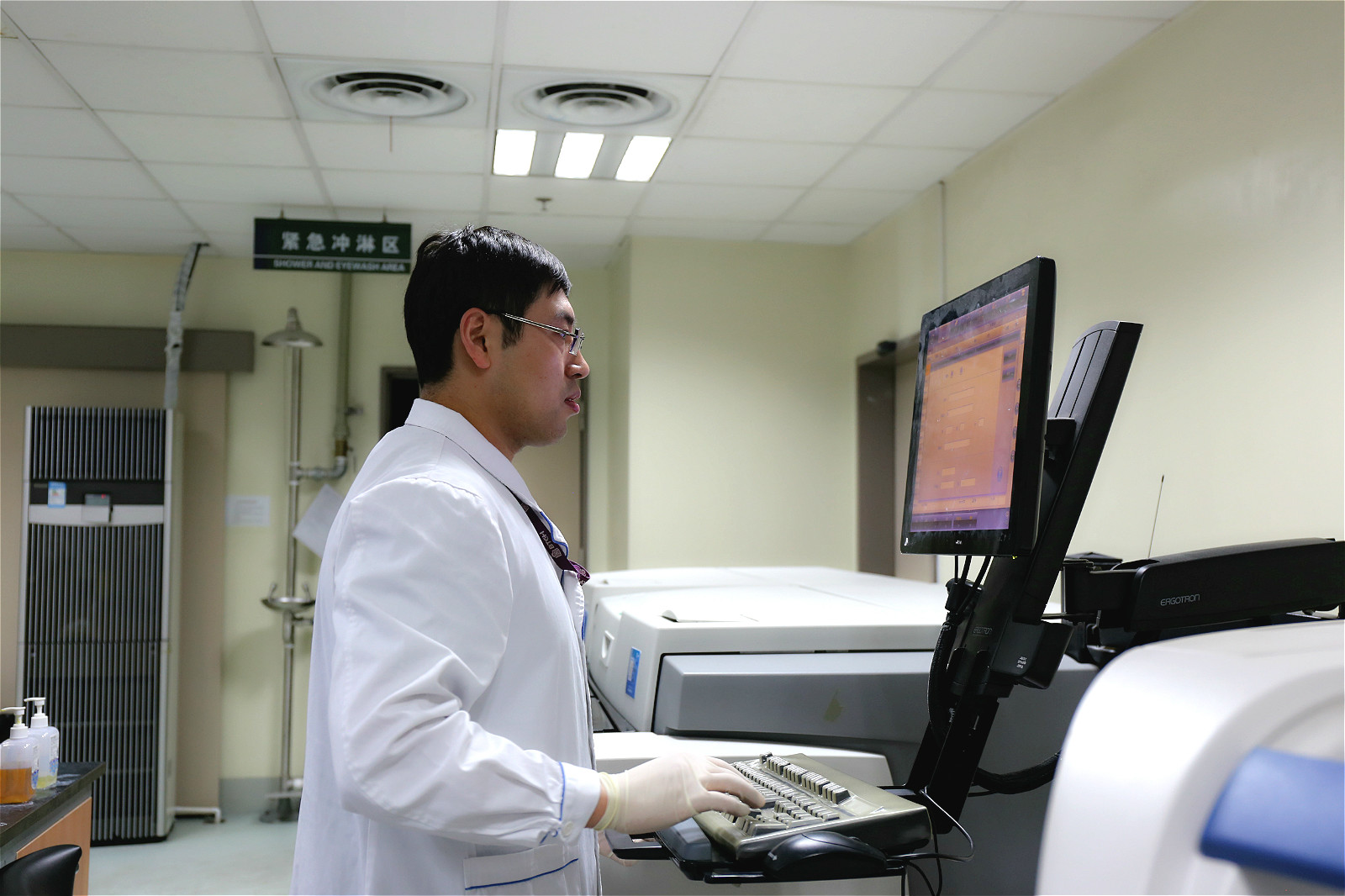 2012年入职的检验科技师王腾蛟是医院的“老人儿”了,前年除夕值班,今年初一值班,对于春节值班他已经习惯,负责生化检验工作的他,最挂念的还是家里老人和孩子,因为离家路程较远,下班到家时间都比较晚,陪家人的时间实在有限,每次回家孩子都粘着爸爸陪他玩。说道新年愿望,他腼腆的笑了笑,平时检验工作很繁重,工作量大的时候,同事们都会互相帮忙,新的一年希望我们的空间更大一些,有更先进的设备!
