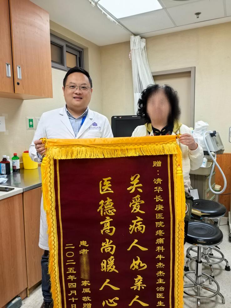 患者张先生疼痛剧烈且视力下降,并且长期疼痛导致失眠、焦虑、抑郁,形成“疼痛-情绪-睡眠”恶性循环,疼痛科执行主任路桂军团队迅速将其收入院。经过全面评估,团队决定在CT引导下为患者实施左侧三叉神经半月节置入神经电刺激治疗,疼痛科在国内率先将骶神经电刺激技术应用在带状疱疹后神经痛引起的三叉神经区的疼痛治疗。术中全程清醒,局麻下操作,有别于传统术中使用的脊髓电刺激,降低术后出现脱出、移位,多触点利用率低的问题。术后当晚,患者就体验到了久违的平静,表示这是他近4周来睡得最香甜的一晚。