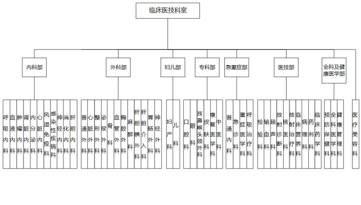 临床专科设置齐全,包括内科部、外科部、妇儿部、专科部、急重症部、医技部、全科与健康医学部等7个部,49个临床和医技科室。开业以来,已经形成了肝胆胰中心、神经中心、消化中心、急重症中心等优势突出的整合式医疗中心,涌现出心脏内科、妇产科、耳鼻咽喉头颈外科、泌尿外科、骨科、放射科、麻醉科等重点专科,整体医疗服务能力已达到国内一流水平。医院获批成为国家住院医师规范化培训基地、国家专科医师规范化培训试点基地,获得器官移植资质、国家药物临床试验机构资格,及医疗器械临床试验机构资质认定。