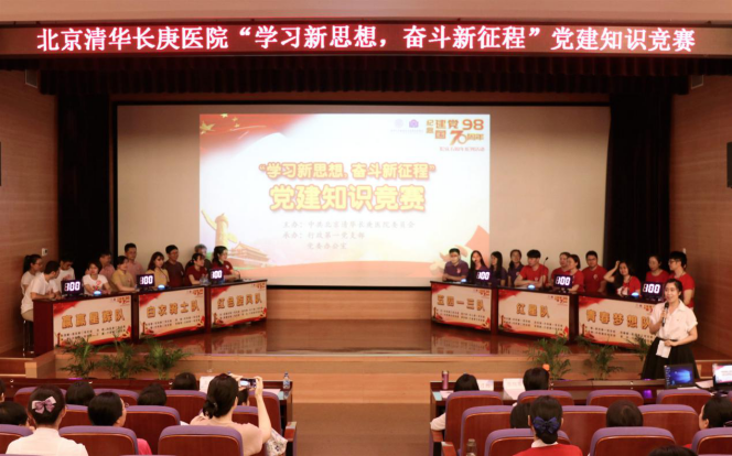 北京清华长庚医院6月20日电(通讯员 王思扬)2019年6月19日,清华大学附属北京清华长庚医院在集会厅举办“学习新思想,奋斗新征程”党建知识竞赛。值医院五周年之际,以赛促学,实行理论学习全覆盖,全面贯彻落实习近平新时代中国特色社会主义思想和党的十九大精神,激发基层党组织活力和战斗力。院党委书记周月红,党委副书记、纪委书记陈旭岩,党委副书记王克霞作为嘉宾评委出席。