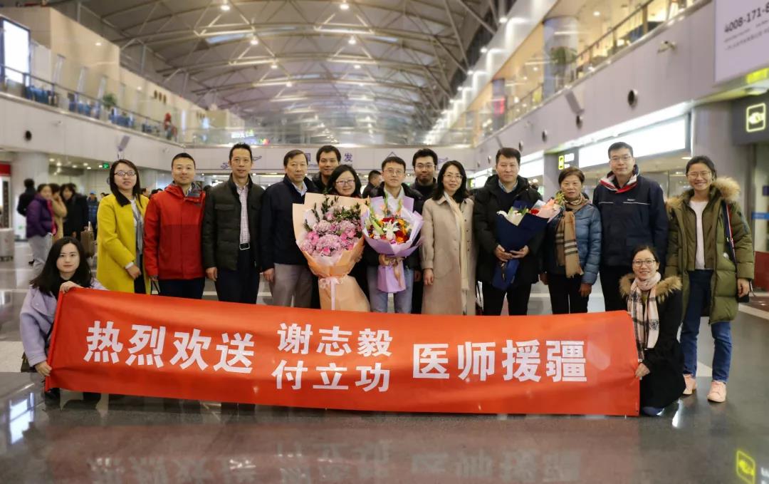 北京清华长庚医院重症医学科副主任医师谢志毅与骨科主治医师付立功赴疆支援边疆医疗工作。院党委书记周月红,重症医学科主任许媛,骨科主任肖嵩华,副主任潘勇卫、蔡谞,党办副主任高茹及科室同仁等前往机场送行。