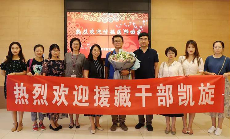 北京清华长庚医院7月26日电(通讯员 王思扬)7月26日,清华大学附属北京清华长庚医院泌尿外科付猛医师圆满完成一年的援藏任务返回北京。院党委书记周月红、科室同仁以及党办、人资相关人员欢迎付猛医师回家。