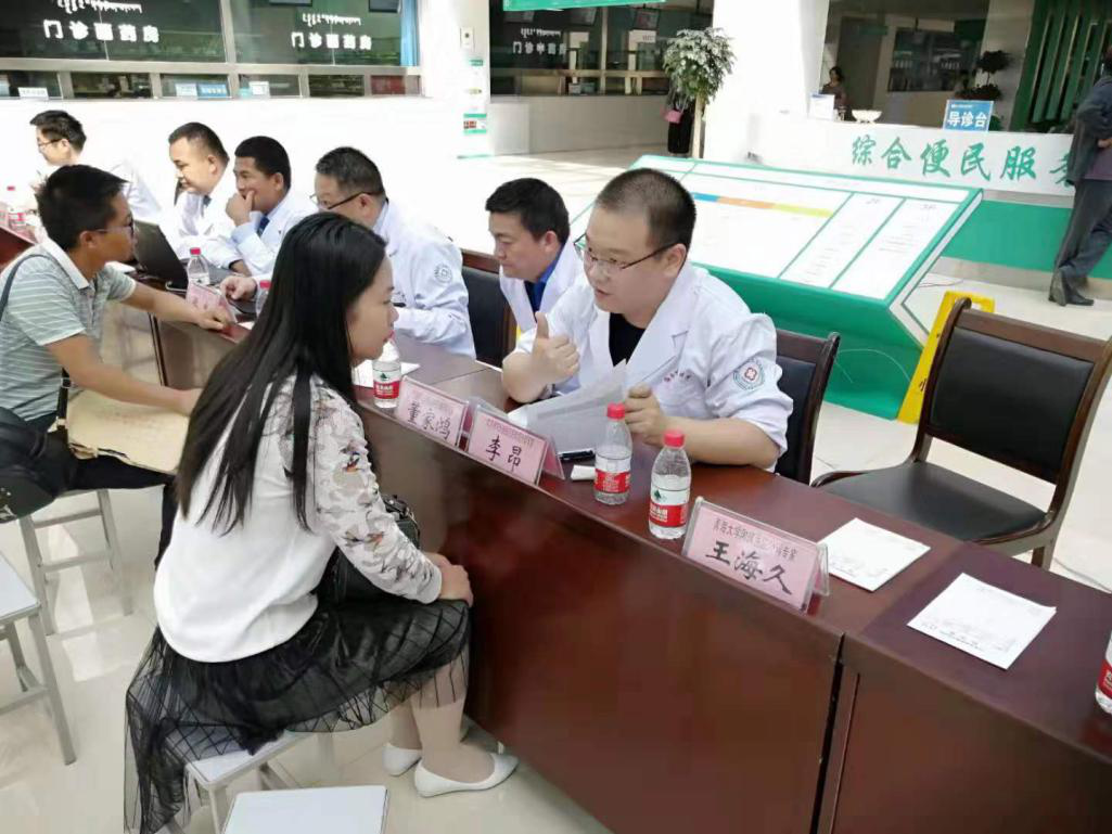 此次走进海西,董家鸿带领着肝肝胆胰外科执行主任卢倩,青年医师童翾、李昂,以及手术室护士一同前往。时间紧张、日程紧凑,医疗队迅速与海西州人民医院对接,董家鸿带队进行教学查房,并主刀为尾状叶囊性包虫和二次手术的右后叶囊性包虫患者实施了精准肝脏切除术教学手术;卢倩为当地的同道进行了学术讲座,交流肝包虫病诊疗技术;童翾、李昂加入义诊队,为当地的居民做肝包虫病的筛查和预防宣教。