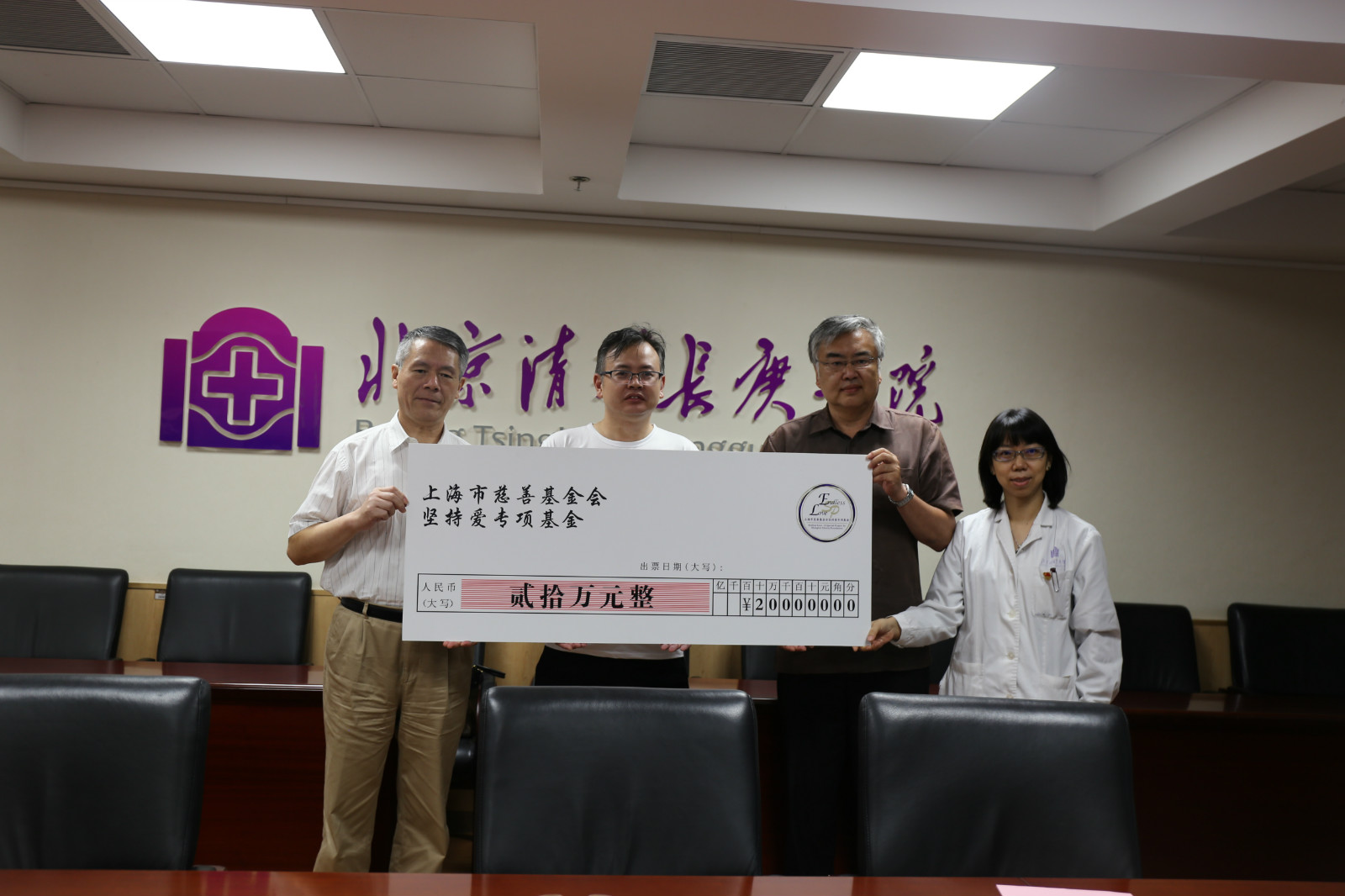 北京清华长庚医院9月10日电(通讯员 马丽娜)2019年9月9日慈善日的下午,上海慈善基金会坚持爱专项基金“致敬缉毒英雄罗金勇”捐赠仪式在北京清华长庚医院举行,公安部文联办公室代表王仁光、中国残疾人福利基金会心源计划代表邓慧惠、上海慈善基金会副理事长施南昌、坚持爱专项基金发起人顾建华、坚持爱专项基金副主任徐文鹏、上海市慈善基金会坚持爱专项基金孟鸿坤、坚持爱专项基金明星志愿者代表张晞临、爱心单位宁波紫微星空演艺经纪有限公司董事长赵爽、北京清华长庚医院副院长王劲、康复医学科主任潘钰、院办社服张蕾等共同出席了此次捐赠活动。