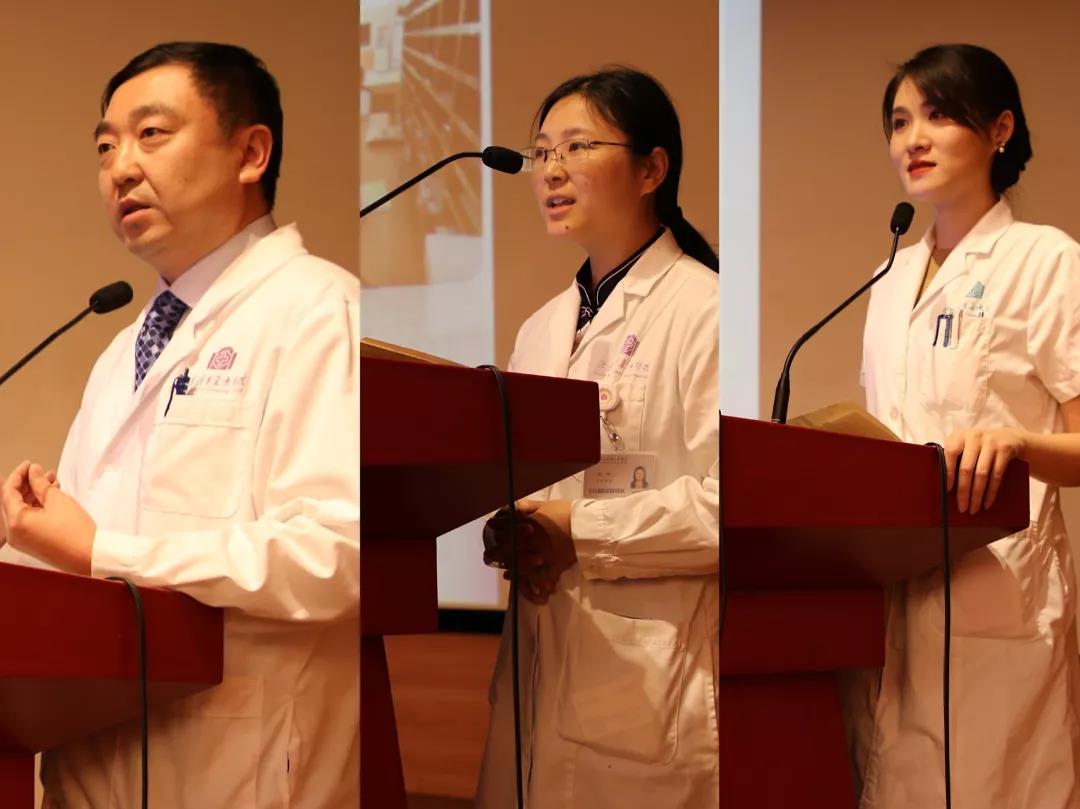 麻醉科主任张欢作为优秀教学团队带头人发言,分享了科室特色教学经验,即落实每周一至五规律性的教学安排,做到“教学不间断,天天有收获”;坚持“形成型评价”与“终结型评价”相结合的多种形式考核,并不断完善。心脏内科谢颖医师作为优秀临床指导教师代表发言,回忆了一年来参与教育教学工作的心路历程,正是临床带教中很多难忘的“第一次”开启了无数指导老师的教学之路;普通外科季午阳医师代表优秀住院医师发言,作为医院第一批“清华医学英才”项目的一员,两年里在临床、科研及文体生活中都得到了长足锻炼,“我们青年医师若是不能以家国为己任,那国家未来的医学事业还能要靠谁呢?”坚守医学誓言,治病救人,星辰大海,未来可期。